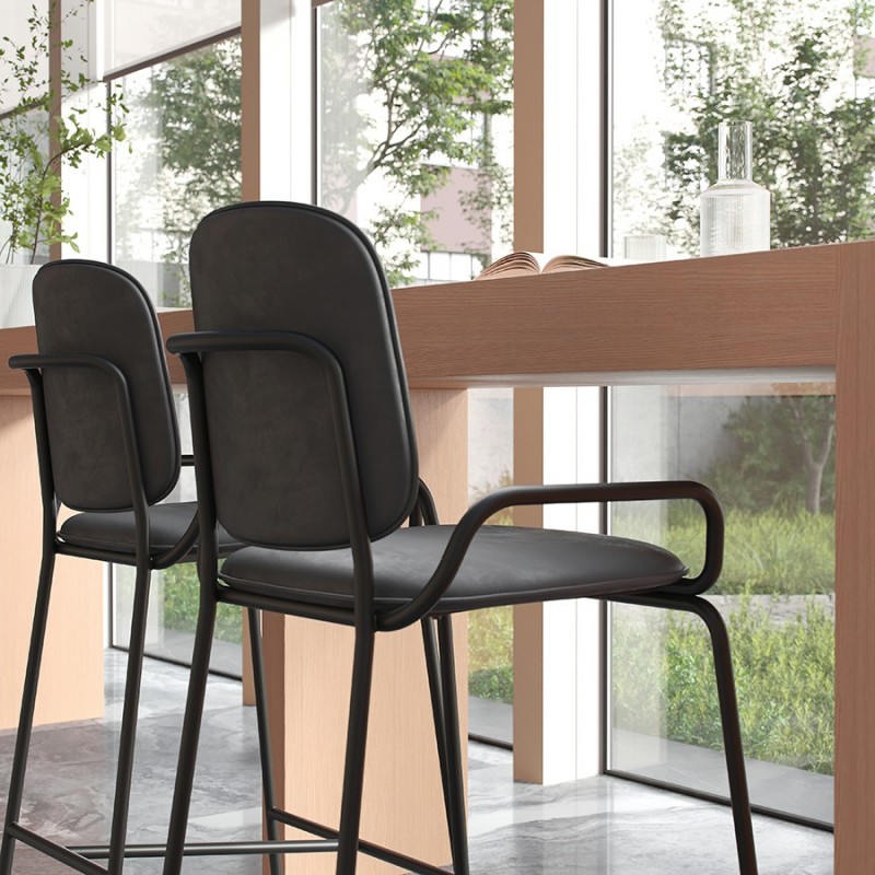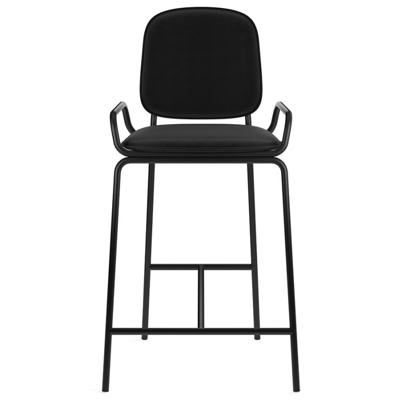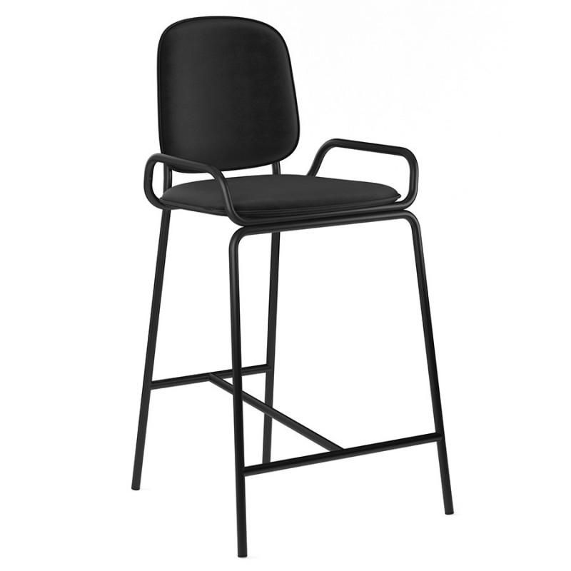 Коллекция Ror – это мебель с индивидуальным характером. Отправной точкой создания линейки стало динамичное движение, воплощенное в логотипе Олимпиады 80, где беговые дорожки образуют силуэт Спасской башни.Стул полубарный Double Frame имеет удобную посадку за счет высокой спинки и широкого основания. Ножки плавно переходят в подлокотники и в нижней части соединяются металлической рамой, которая служит подставкой для ног. Такое дизайнерское решение создает дополнительный комфорт во время сидения.Стальной каркас с порошковым покрытием делает конструкцию прочной и надежной, а мягкий велюр с бархатистой текстурой обеспечивает приятные тактильные ощущения. Используемый в качестве наполнителя пенополиуретан отличается оптимальной плотностью и жесткостью. Все материалы отвечают высоким стандартам практичности, долговечности и экологической безопасности.Стул украсит интерьер кафе и ресторана, а также прекрасно подойдет для оформления обеденной зоны и кухонного острова в доме или квартире.Материалы: сталь, фанера, 100% пенополиуретан, 100% полиэстер. Размеры: 52,7х53,9х98,5 см. Максимальная нагрузка: 136 кг. Цвет: черный/черный.Загрязнения удалять с поверхностей мыльным раствором воды при помощи мягкой губки или салфетки.