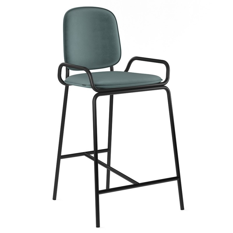 Коллекция Ror – это мебель с индивидуальным характером. Отправной точкой создания линейки стало динамичное движение, воплощенное в логотипе Олимпиады 80, где беговые дорожки образуют силуэт Спасской башни.Стул полубарный Double Frame имеет удобную посадку за счет высокой спинки и широкого основания. Ножки плавно переходят в подлокотники и в нижней части соединяются металлической рамой, которая служит подставкой для ног. Такое дизайнерское решение создает дополнительный комфорт во время сидения.Стальной каркас с порошковым покрытием делает конструкцию прочной и надежной, а мягкий велюр с бархатистой текстурой обеспечивает приятные тактильные ощущения. Используемый в качестве наполнителя пенополиуретан отличается оптимальной плотностью и жесткостью. Все материалы отвечают высоким стандартам практичности, долговечности и экологической безопасности.Стул украсит интерьер кафе и ресторана, а также прекрасно подойдет для оформления обеденной зоны и кухонного острова в доме или квартире.Материалы: сталь, фанера, 100% пенополиуретан, 100% полиэстер. Размеры: 52,7х53,9х98,5 см. Максимальная нагрузка: 136 кг. Цвет: черный/зеленый.Загрязнения удалять с поверхностей мыльным раствором воды при помощи мягкой губки или салфетки.
