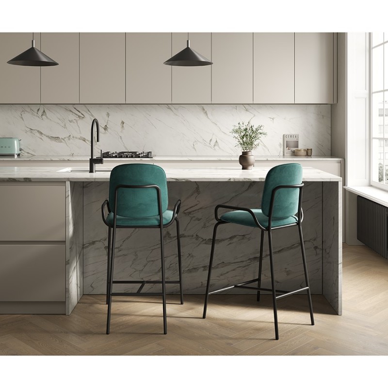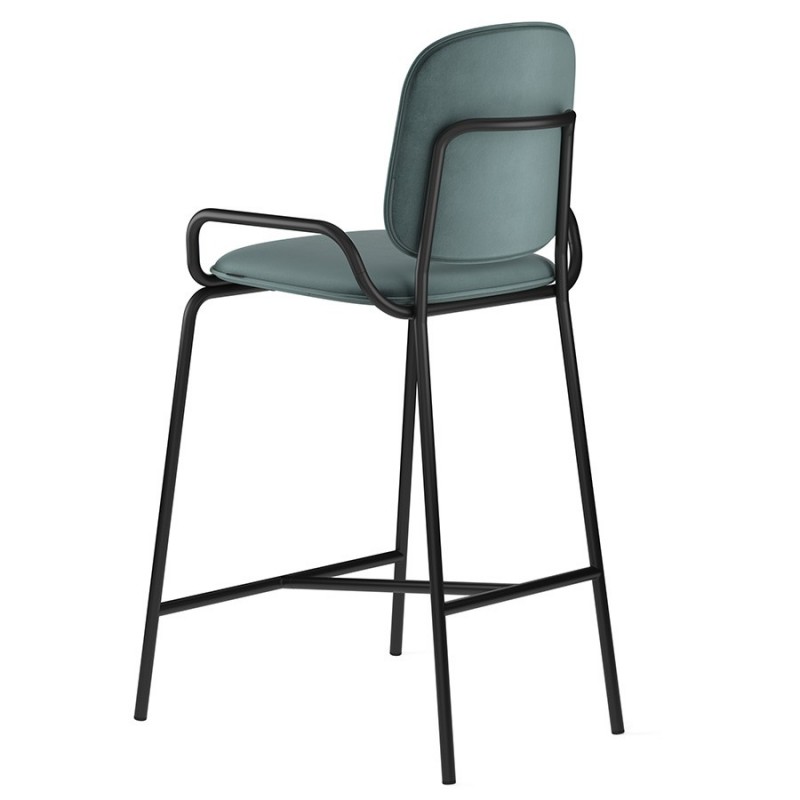 Коллекция Ror – это мебель с индивидуальным характером. Отправной точкой создания линейки стало динамичное движение, воплощенное в логотипе Олимпиады 80, где беговые дорожки образуют силуэт Спасской башни.Стул полубарный Double Frame имеет удобную посадку за счет высокой спинки и широкого основания. Ножки плавно переходят в подлокотники и в нижней части соединяются металлической рамой, которая служит подставкой для ног. Такое дизайнерское решение создает дополнительный комфорт во время сидения.Стальной каркас с порошковым покрытием делает конструкцию прочной и надежной, а мягкий велюр с бархатистой текстурой обеспечивает приятные тактильные ощущения. Используемый в качестве наполнителя пенополиуретан отличается оптимальной плотностью и жесткостью. Все материалы отвечают высоким стандартам практичности, долговечности и экологической безопасности.Стул украсит интерьер кафе и ресторана, а также прекрасно подойдет для оформления обеденной зоны и кухонного острова в доме или квартире.Материалы: сталь, фанера, 100% пенополиуретан, 100% полиэстер. Размеры: 52,7х53,9х98,5 см. Максимальная нагрузка: 136 кг. Цвет: черный/зеленый.Загрязнения удалять с поверхностей мыльным раствором воды при помощи мягкой губки или салфетки.