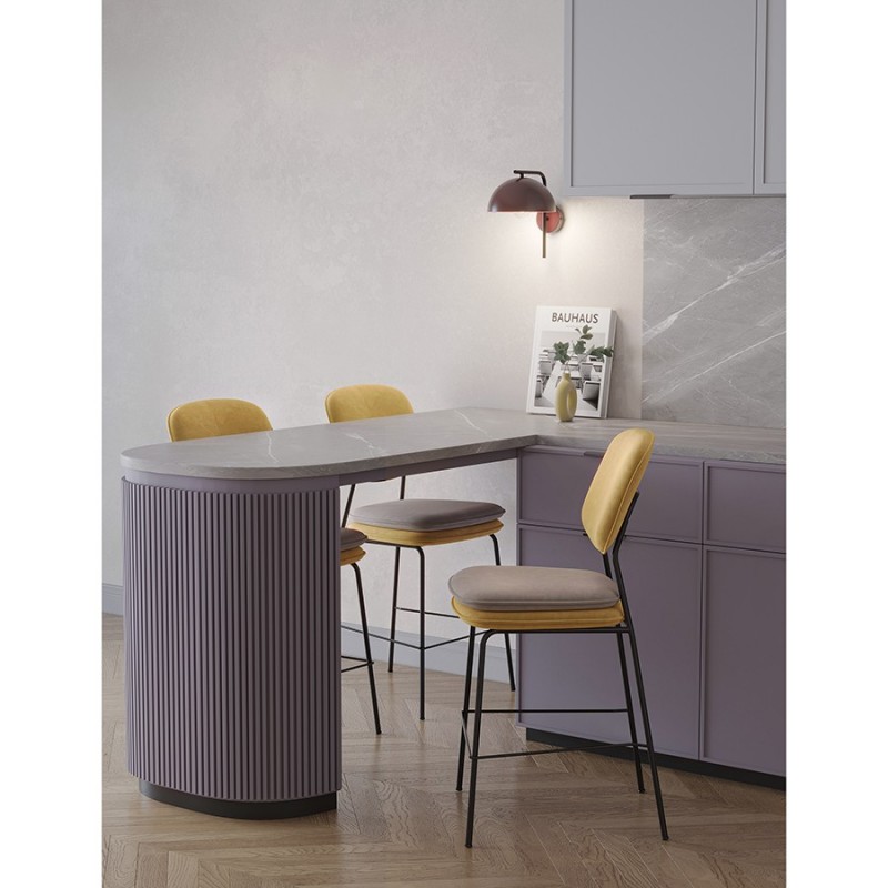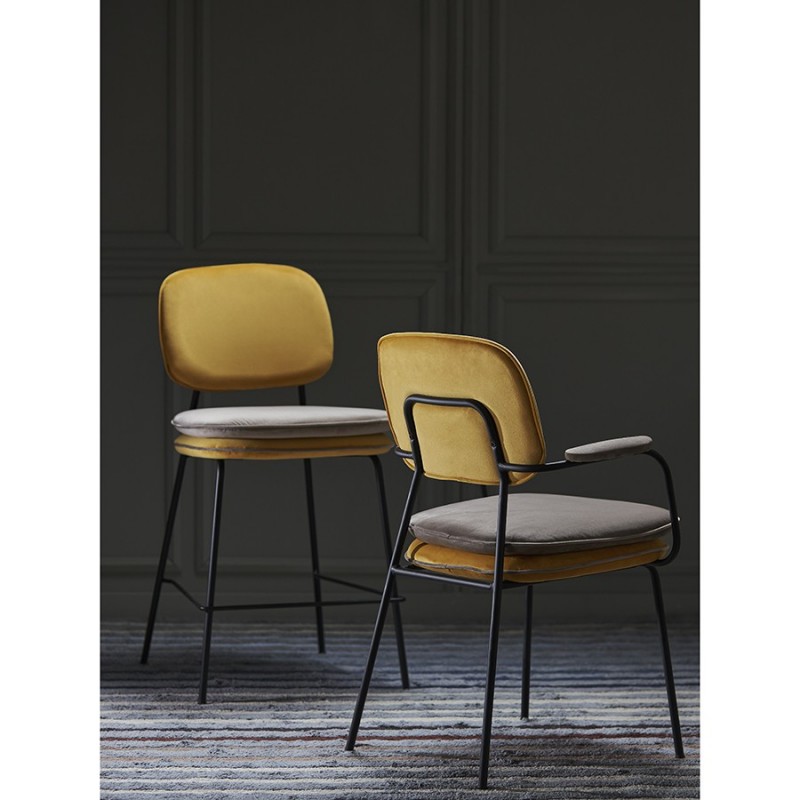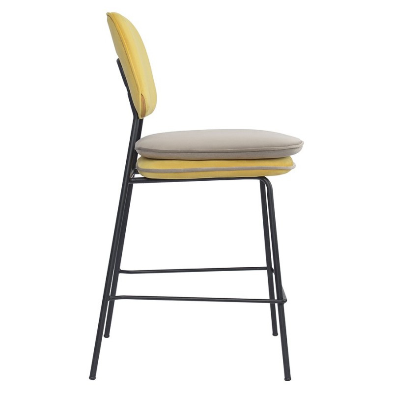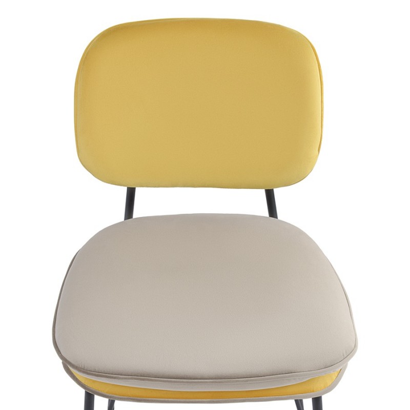 Стул полубарный Pea с контрастным кантом и мягкой обивкой из бархатистого велюра станет настоящим украшением интерьера и идеальным выбором для ценителей качественной и элегантной мебели.Особенности и преимущества:- Обивка из велюра создает приятные тактильные ощущения, смотрится презентабельно, придавая мебели изысканный вид. - Удобное сиденье с наполнителем из пенополиуретана и спинка с обивкой обеспечивают комфортную посадку. - Ножки из железа имеют порошковое покрытие, которое защищает их поверхность от коррозии, потускнения цвета и механических повреждений. - Стабильная и прочная конструкция делает стул устойчивым, надежным и долговечным. - Дизайн актуален для классических и современных стилевых направлений.Перефразируя слова известного британского дизайнера Уильяма Морриса, дом – это не место для бесполезных и некрасивых вещей, и уникальная коллекция Pea является ярким тому подтверждением. В ее основе лежит сказка “Принцесса на горошине”, и ее главная цель – пробудить ребенка в каждом из нас. Мы верим, что предметы должны быть не просто функциональными, но и нести в себе определенный смысл. Поэтому мебель из нашей новой коллекции не только приносит комфорт в ваш дом, но и рассказывает захватывающую историю.Первыми товарами линейки стали предметы мебели для спальни, сегодня она уже включает в себя пуфы, банкетки и стулья. Главный мотив – двойная подушка, которая напоминает нам о сказочном испытании принцессы. Основные особенности коллекции – пуговицы-горошины, подушки квадратной формы с закругленными краями и оригинальные ножки в виде перевернутой буквы Y, которые делают дизайн живым и непринужденным.Материалы: 100% полиэстер, пенополиуретан, фанера (береза), железо. Размеры: 48,7х52,1х96 см. Высота сиденья: 62 см. Ширина сиденья: 48 см. Глубина сиденья: 46 см. Высота спинки: 29,5 см. Ширина спинки: 43 см. Цвет: желтый/бежевый. Максимальная нагрузка: 150 кг.Рекомендуется регулярно пылесосить мебель с помощью специальной насадки – резиновой или мягкой щетки. Образовавшиеся пятна можно удалять губкой или салфеткой со слабым мыльным раствором воды. Запрещается использовать абразивные материалы и агрессивную бытовую химию.