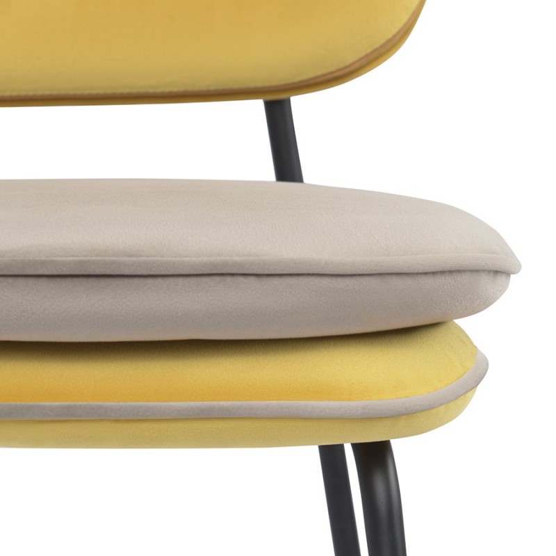 Стул полубарный Pea с контрастным кантом и мягкой обивкой из бархатистого велюра станет настоящим украшением интерьера и идеальным выбором для ценителей качественной и элегантной мебели.Особенности и преимущества:- Обивка из велюра создает приятные тактильные ощущения, смотрится презентабельно, придавая мебели изысканный вид. - Удобное сиденье с наполнителем из пенополиуретана и спинка с обивкой обеспечивают комфортную посадку. - Ножки из железа имеют порошковое покрытие, которое защищает их поверхность от коррозии, потускнения цвета и механических повреждений. - Стабильная и прочная конструкция делает стул устойчивым, надежным и долговечным. - Дизайн актуален для классических и современных стилевых направлений.Перефразируя слова известного британского дизайнера Уильяма Морриса, дом – это не место для бесполезных и некрасивых вещей, и уникальная коллекция Pea является ярким тому подтверждением. В ее основе лежит сказка “Принцесса на горошине”, и ее главная цель – пробудить ребенка в каждом из нас. Мы верим, что предметы должны быть не просто функциональными, но и нести в себе определенный смысл. Поэтому мебель из нашей новой коллекции не только приносит комфорт в ваш дом, но и рассказывает захватывающую историю.Первыми товарами линейки стали предметы мебели для спальни, сегодня она уже включает в себя пуфы, банкетки и стулья. Главный мотив – двойная подушка, которая напоминает нам о сказочном испытании принцессы. Основные особенности коллекции – пуговицы-горошины, подушки квадратной формы с закругленными краями и оригинальные ножки в виде перевернутой буквы Y, которые делают дизайн живым и непринужденным.Материалы: 100% полиэстер, пенополиуретан, фанера (береза), железо. Размеры: 48,7х52,1х96 см. Высота сиденья: 62 см. Ширина сиденья: 48 см. Глубина сиденья: 46 см. Высота спинки: 29,5 см. Ширина спинки: 43 см. Цвет: желтый/бежевый. Максимальная нагрузка: 150 кг.Рекомендуется регулярно пылесосить мебель с помощью специальной насадки – резиновой или мягкой щетки. Образовавшиеся пятна можно удалять губкой или салфеткой со слабым мыльным раствором воды. Запрещается использовать абразивные материалы и агрессивную бытовую химию.