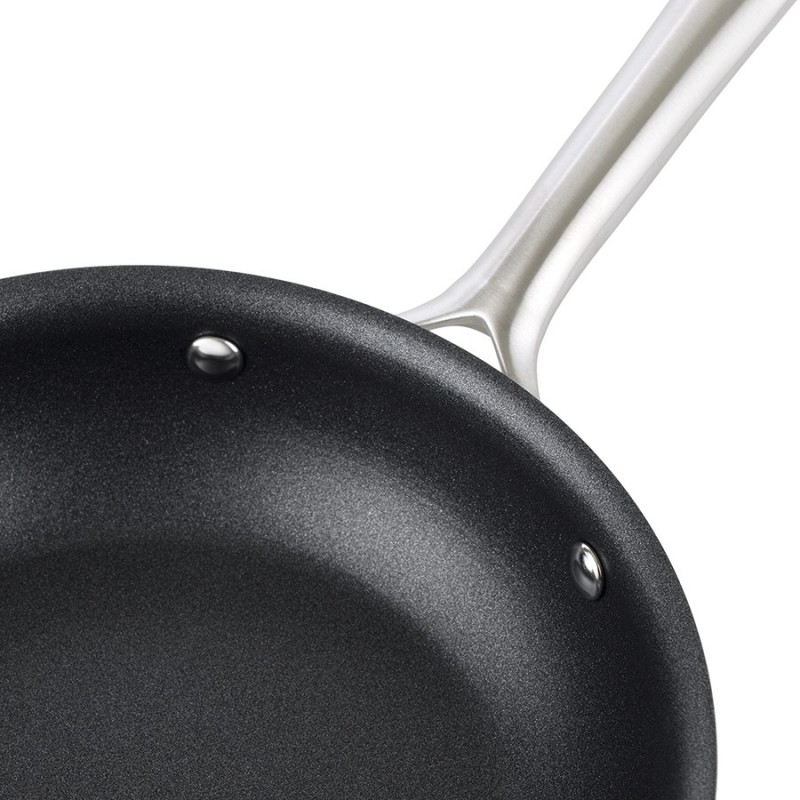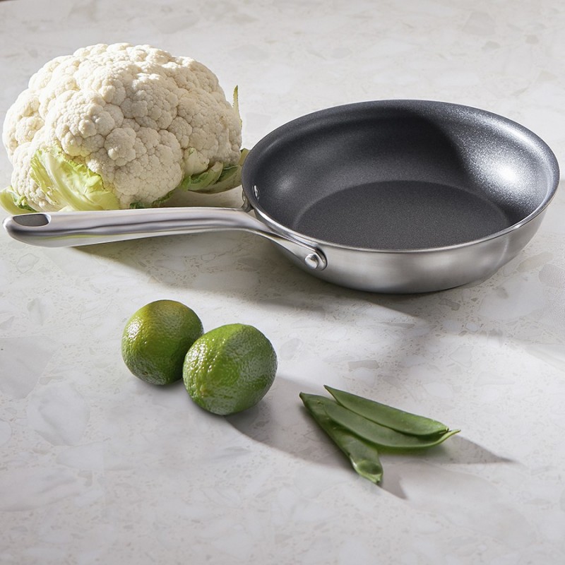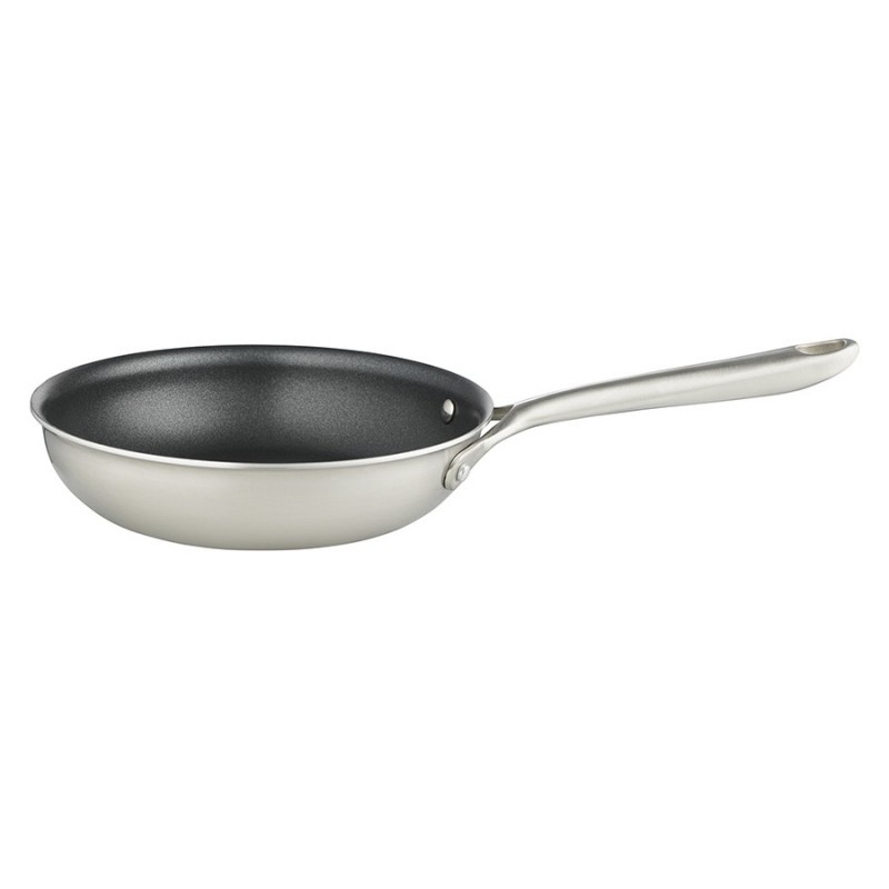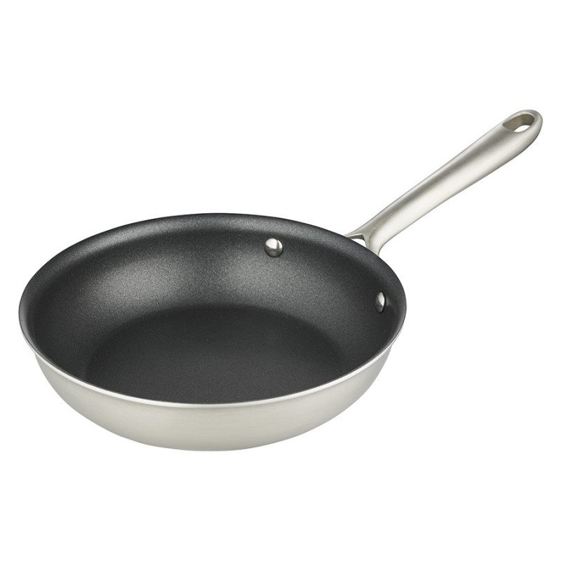Сковорода 3Ply Etalon, изготовленная по инновационной технологии TRI-PLY, с антипригарным покрытием Teflon Platinum поможет получить настоящее удовольствие от готовки и позволит почувствовать себя настоящим шеф-поваром на собственной кухне.Особенности и преимущества:- Сковорода изготовлена из высококачественной нержавеющей стали 18/10, благодаря чему долго служит, сохраняя первозданный вид. - Дно и стенки из нержавеющей стали толщиной 2,5 мм с внутренним слоем из алюминия обеспечивают равномерное распределение тепла. - Посуда с толстым дном и стенками менее подвержена вмятинам и повреждениям. - Трехслойное покрытие Теflon Platinum не боится царапин, предотвращает прилипание продуктов, не выделяет вредных веществ и легко моется. - Устойчивая к нагреву ручка гарантирует безопасное и удобное использование. - Сковорода подходит для всех видов плит, включая индукционные, газовые и электрические. - Благодаря матовой поверхности посуда 3Ply Etalon выглядит невероятно стильно, что делает ее украшением любой современной кухни.Посуда из нержавеющей стали 3Ply Etalon изготовлена по инновационной технологии TRI-PLY – ее стенки и дно имеют два слоя стали, между которыми предусмотрен слой алюминия. Эта особенность обеспечивает изделиям превосходную теплопроводность, практичность и долговечность. Коллекция идеально подходит для любых типов плит и впечатляет трендовым дизайном – сочетание современных форм и матовой поверхности делает ее настоящим украшением любой кухни.Материал: нержавеющая сталь, алюминий, антипригарное покрытие Теflon Platinum. Диаметр по краю внешний: 21,7 см. Диаметр по краю внутренний: 20 см. Длина: 38,6 см. Высота: 5,2 см. Диаметр дна снаружи: 15,5 см. Диаметр дна изнутри: 15 см. Высота стенки изнутри: 4,9 см.Сковороду запрещено мыть в посудомоечной машине, только вручную. Перед первым использованием необходимо промыть сковороду в теплой мыльной воде при помощи мягкой губки. В дальнейшем рекомендуется очищать посуду сразу после приготовления, как только она остынет. Запрещается использование абразивов и агрессивной бытовой химии.