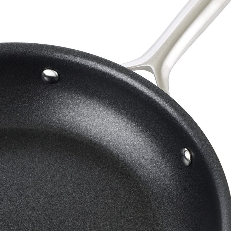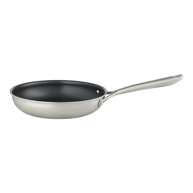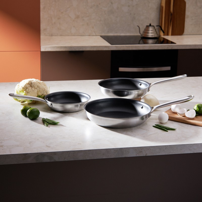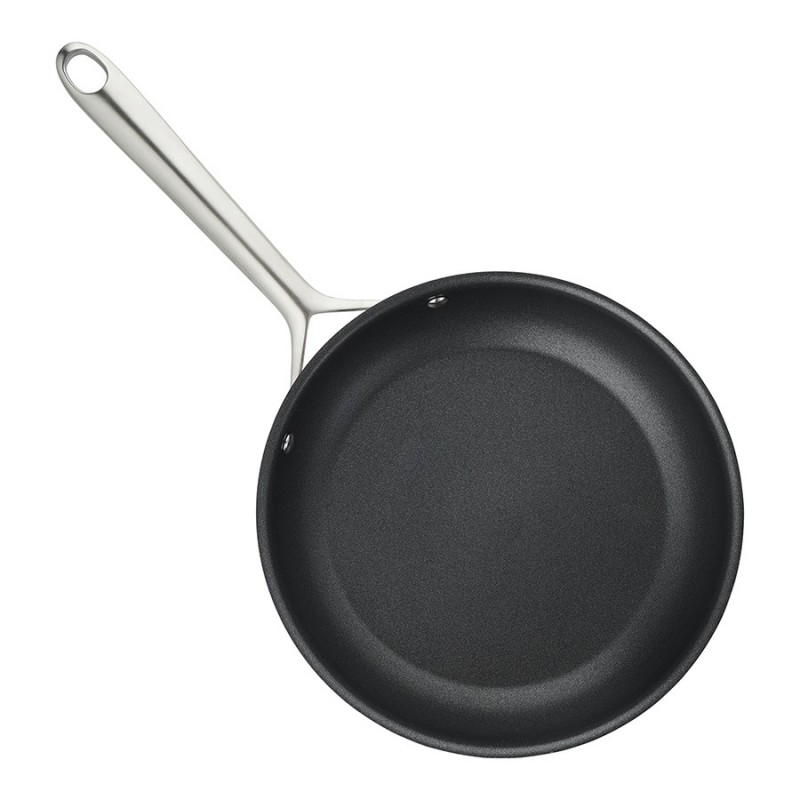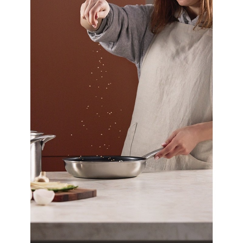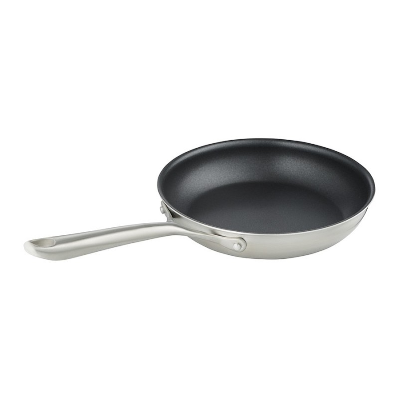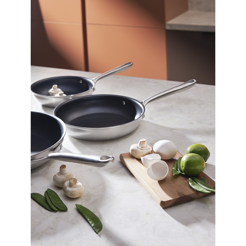 Сковорода 3Ply Etalon, изготовленная по инновационной технологии TRI-PLY, с антипригарным покрытием Teflon Platinum поможет получить настоящее удовольствие от готовки и позволит почувствовать себя настоящим шеф-поваром на собственной кухне.Особенности и преимущества:- Сковорода изготовлена из высококачественной нержавеющей стали 18/10, благодаря чему долго служит, сохраняя первозданный вид. - Дно и стенки из нержавеющей стали толщиной 2,5 мм с внутренним слоем из алюминия обеспечивают равномерное распределение тепла. - Посуда с толстым дном и стенками менее подвержена вмятинам и повреждениям. - Трехслойное покрытие Теflon Platinum не боится царапин, предотвращает прилипание продуктов, не выделяет вредных веществ и легко моется. - Устойчивая к нагреву ручка гарантирует безопасное и удобное использование. - Сковорода подходит для всех видов плит, включая индукционные, газовые и электрические. - Благодаря матовой поверхности посуда 3Ply Etalon выглядит невероятно стильно, что делает ее украшением любой современной кухни.Посуда из нержавеющей стали 3Ply Etalon изготовлена по инновационной технологии TRI-PLY – ее стенки и дно имеют два слоя стали, между которыми предусмотрен слой алюминия. Эта особенность обеспечивает изделиям превосходную теплопроводность, практичность и долговечность. Коллекция идеально подходит для любых типов плит и впечатляет трендовым дизайном – сочетание современных форм и матовой поверхности делает ее настоящим украшением любой кухни.Материал: нержавеющая сталь, алюминий, антипригарное покрытие Теflon Platinum. Диаметр по краю внешний: 25,3 см. Диаметр по краю внутренний: 24 см. Длина: 45,8 см. Высота: 5,5 см. Диаметр дна снаружи: 19,5 см. Диаметр дна изнутри: 19,5 см. Высота стенки изнутри: 5,5 см.Сковороду запрещено мыть в посудомоечной машине, только вручную. Перед первым использованием необходимо промыть сковороду в теплой мыльной воде при помощи мягкой губки. В дальнейшем рекомендуется очищать посуду сразу после приготовления, как только она остынет. Запрещается использование абразивов и агрессивной бытовой химии.