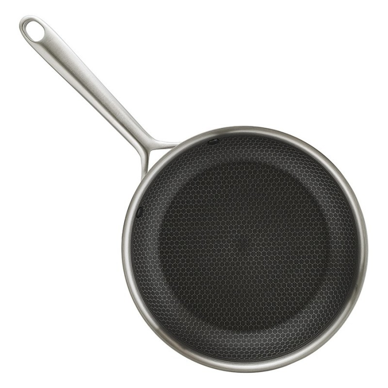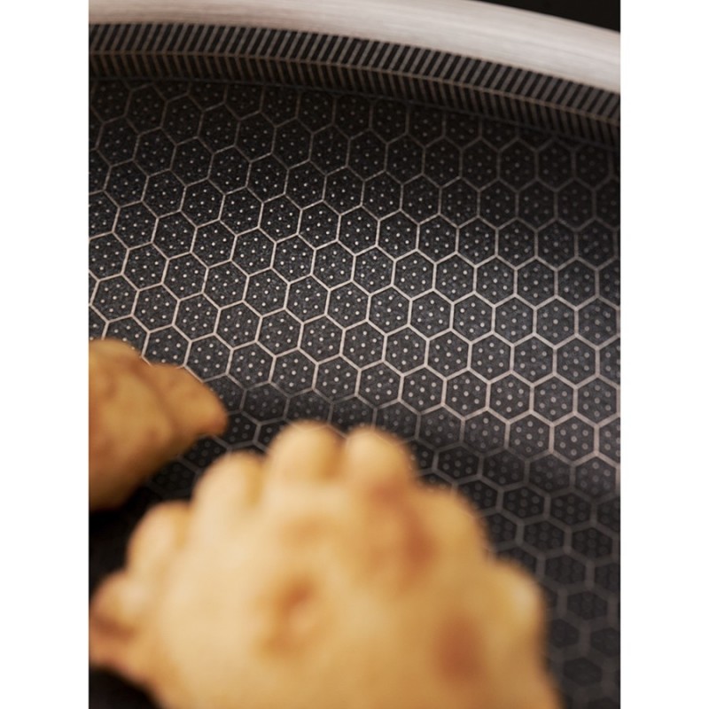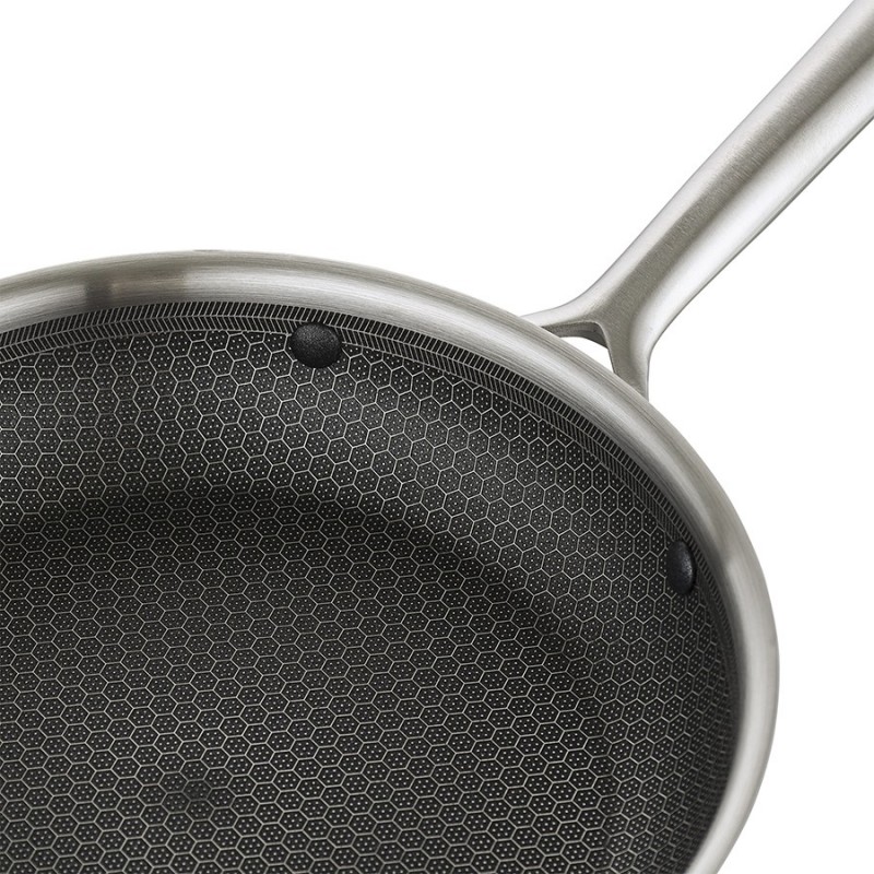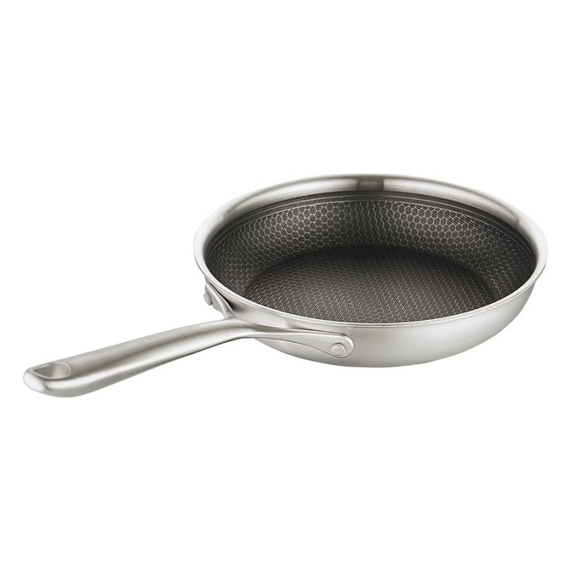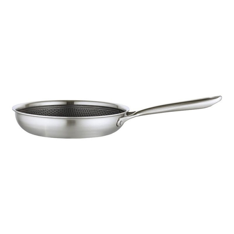 Сковорода 3Ply Etalon, изготовленная по инновационной технологии TRI-PLY, с уникальным структурным дном Honeycomb с лазерным напылением поможет получить настоящее удовольствие от готовки и позволит почувствовать себя настоящим шеф-поваром на собственной кухне.Особенности и преимущества:- Сковорода изготовлена из высококачественной нержавеющей стали 18/10, благодаря чему долго служит, сохраняя первозданный вид. - Дно и стенки из нержавеющей стали толщиной 2,5 мм с внутренним слоем из алюминия обеспечивают равномерное распределение тепла. - Посуда с толстым дном и стенками менее подвержена вмятинам и повреждениям. - Структурное дно Honeycomb с лазерным напылением устойчиво к царапинам и повреждениям, что позволяет использовать металлические кухонные инструменты. - Трехслойное покрытие Теflon Platinum не боится царапин, предотвращает прилипание продуктов, не выделяет вредных веществ и легко моется. - Устойчивая к нагреву ручка гарантирует безопасное и удобное использование. - Сковорода подходит для всех видов плит, включая индукционные, газовые и электрические. - Благодаря матовой поверхности посуда 3Ply Etalon выглядит невероятно стильно, что делает ее украшением любой современной кухни.! 3Ply Etalon с лазерным напылением по своим антипригарным свойствам отличается от сковородок с традиционным тефлоновым покрытием. Структурное дно Honeycomb предотвращает прилипание, но не полностью защищает от этого, поэтому рекомендуем хорошо разогревать сковороду перед жаркой и обязательно использовать небольшое количество масла. Некоторые “капризные” продукты, например, яичница, могут первое время требовать чуть больше внимания и контроля температуры. Зато блюда, приготовленные на этой сковороде, приобретают хрустящую корочку, которую сложнее получить на обычной антипригарной поверхности.Материал: нержавеющая сталь, алюминий, антипригарное покрытие Теflon Platinum. Диаметр по краю внешний: 25,6 см. Диаметр по краю внутренний: 24 см. Ширина: 25,5 см. Длина: 45,9 см. Высота: 5 см. Диаметр дна снаружи: 19 см. Диаметр дна изнутри: 19 см. Высота стенки изнутри: 5,5 см.Сковороду запрещено мыть в посудомоечной машине, только вручную. Перед первым использованием необходимо промыть сковороду в теплой мыльной воде при помощи мягкой губки. В дальнейшем рекомендуется очищать посуду сразу после приготовления, как только она остынет. Запрещается использование абразивов и агрессивной бытовой химии.