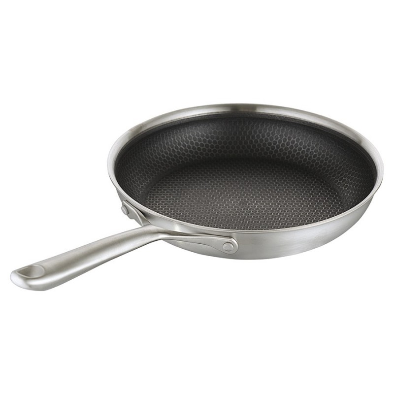 Сковорода 3Ply Etalon, изготовленная по инновационной технологии TRI-PLY, с уникальным структурным дном Honeycomb с лазерным напылением поможет получить настоящее удовольствие от готовки и позволит почувствовать себя настоящим шеф-поваром на собственной кухне.Особенности и преимущества:- Сковорода изготовлена из высококачественной нержавеющей стали 18/10, благодаря чему долго служит, сохраняя первозданный вид. - Дно и стенки из нержавеющей стали толщиной 2,5 мм с внутренним слоем из алюминия обеспечивают равномерное распределение тепла. - Посуда с толстым дном и стенками менее подвержена вмятинам и повреждениям. - Структурное дно Honeycomb с лазерным напылением устойчиво к царапинам и повреждениям, что позволяет использовать металлические кухонные инструменты. - Трехслойное покрытие Теflon Platinum не боится царапин, предотвращает прилипание продуктов, не выделяет вредных веществ и легко моется. - Устойчивая к нагреву ручка гарантирует безопасное и удобное использование. - Сковорода подходит для всех видов плит, включая индукционные, газовые и электрические. - Благодаря матовой поверхности посуда 3Ply Etalon выглядит невероятно стильно, что делает ее украшением любой современной кухни.! 3Ply Etalon с лазерным напылением по своим антипригарным свойствам отличается от сковородок с традиционным тефлоновым покрытием. Структурное дно Honeycomb предотвращает прилипание, но не полностью защищает от этого, поэтому рекомендуем хорошо разогревать сковороду перед жаркой и обязательно использовать небольшое количество масла. Некоторые “капризные” продукты, например, яичница, могут первое время требовать чуть больше внимания и контроля температуры. Зато блюда, приготовленные на этой сковороде, приобретают хрустящую корочку, которую сложнее получить на обычной антипригарной поверхности.Материал: нержавеющая сталь, алюминий, антипригарное покрытие Теflon Platinum. Диаметр по краю внешний: 27,7 см. Диаметр по краю внутренний: 26 см. Ширина: 27,6 см. Длина: 44,7 см. Высота: 5 см. Диаметр дна снаружи: 21 см. Диаметр дна изнутри: 21 см. Высота стенки изнутри: 5,5 см.Сковороду запрещено мыть в посудомоечной машине, только вручную. Перед первым использованием необходимо промыть сковороду в теплой мыльной воде при помощи мягкой губки. В дальнейшем рекомендуется очищать посуду сразу после приготовления, как только она остынет. Запрещается использование абразивов и агрессивной бытовой химии.