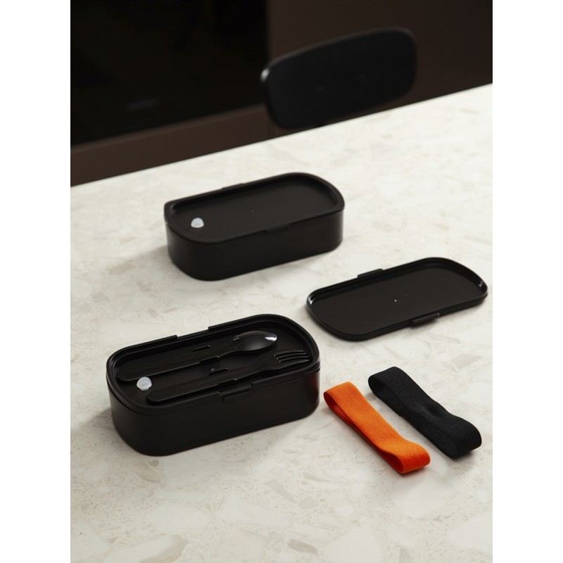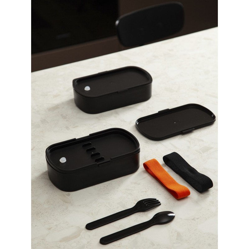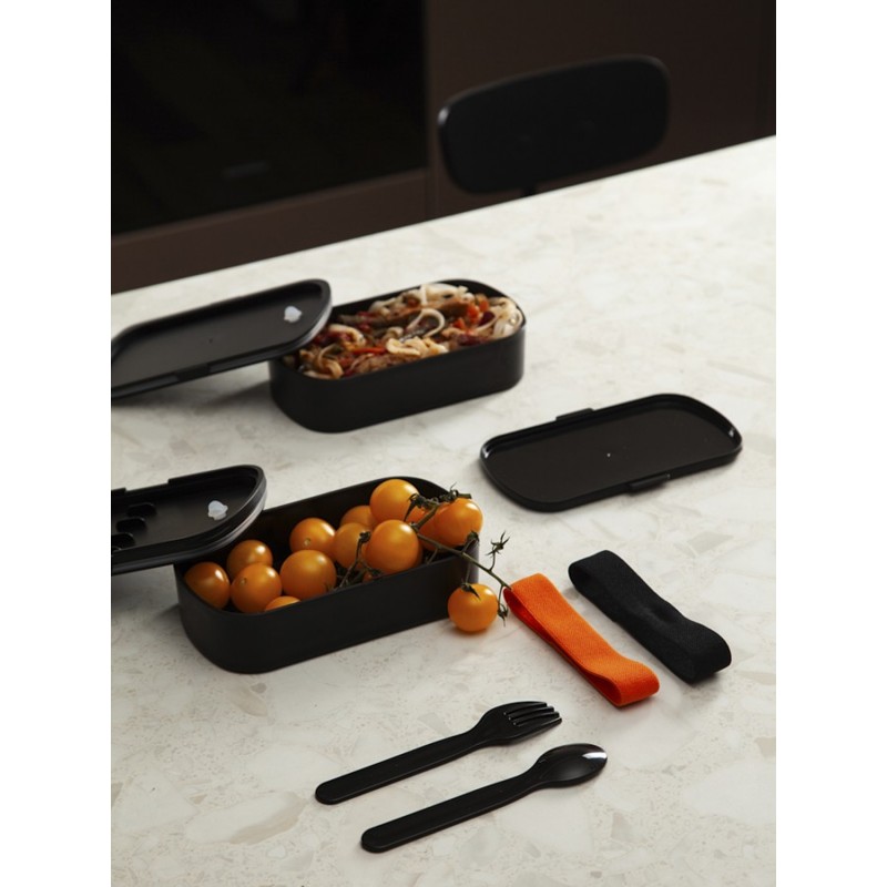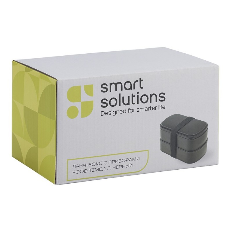 Ланч-бокс Food Time от бренда Smart Solutions – стильный, удобный и практичный двухуровневый контейнер для еды с собой.Особенности и преимущества:- Наличие двух отделений позволяет взять на работу, учебу или прогулку не просто перекус, а полноценный обед. - Емкости и входящие в комплект вилка и ложка изготовлены из прочного и устойчивого к износу полипропилена. - По периметру крышек предусмотрен специальный ободок из силикона, который обеспечивает плотное закрывание и защиту от проливания. - Контейнеры надежно фиксируются резинкой для комфортной транспортировки и компактного хранения. В комплект входит запасная оранжевого цвета. - В составе материалов отсутствует вредный для здоровья бисфенол-А. - Благодаря термостойким свойствам ланч-бокс может использоваться для разогрева пищи в микроволновой печи и хранения продуктов в холодильнике.Материал: полипропилен, силикон, полиэстер, резина. Размеры: 18,5х11х10 см. Объем: 1 л. Цвет: черный.Допускается использование в температурном диапазоне от -30? до +120?. Можно мыть в посудомоечной машине и нагревать в микроволновой печи.
