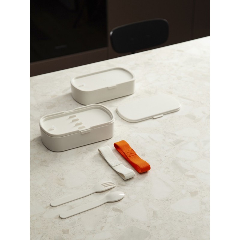 Ланч-бокс Food Time от бренда Smart Solutions – стильный, удобный и практичный двухуровневый контейнер для еды с собой.Особенности и преимущества:- Наличие двух отделений позволяет взять на работу, учебу или прогулку не просто перекус, а полноценный обед. - Емкости и входящие в комплект вилка и ложка изготовлены из прочного и устойчивого к износу полипропилена. - По периметру крышек предусмотрен специальный ободок из силикона, который обеспечивает плотное закрывание и защиту от проливания. - Контейнеры надежно фиксируются резинкой для комфортной транспортировки и компактного хранения. В комплект входит запасная оранжевого цвета. - В составе материалов отсутствует вредный для здоровья бисфенол-А. - Благодаря термостойким свойствам ланч-бокс может использоваться для разогрева пищи в микроволновой печи и хранения продуктов в холодильнике.Материал: полипропилен, силикон, полиэстер, резина. Размеры: 18,5х11х10 см. Объем: 1 л. Цвет: молочный.Допускается использование в температурном диапазоне от -30? до +120?. Можно мыть в посудомоечной машине и нагревать в микроволновой печи.