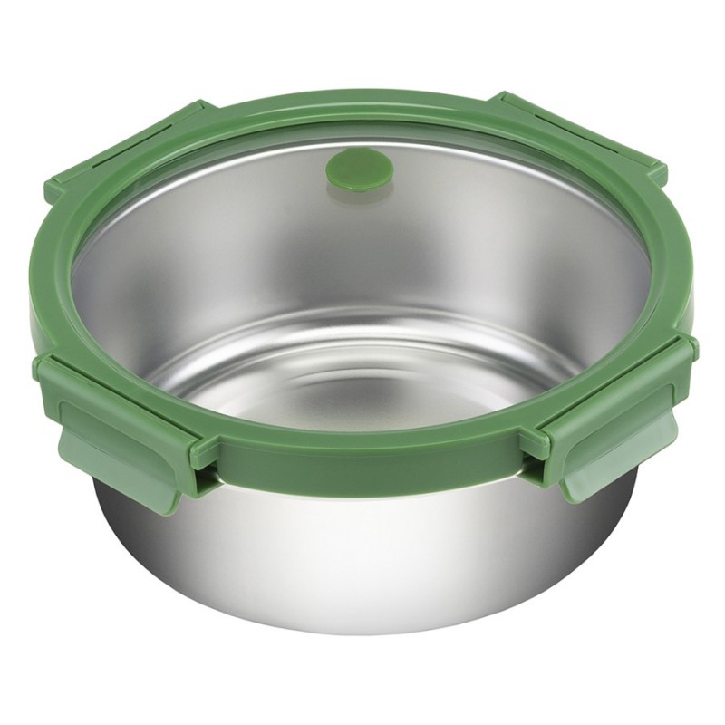 Ланч-бокс из нержавеющей стали – стильная, практичная и надежная посуда для хранения и переноски еды.Особенности и преимущества:- Емкость из нержавеющей стали типа 18/10 не боится коррозии, не впитывает запахи и загрязнения, долго сохраняет привлекательный вид. - Крышка из прочного боросиликатного стекла легко выдерживает перепады температуры, имеет специальные фиксаторы, которые помогают избежать протечек. - Наличие вентиляционного отверстия позволяет выпустить из контейнера лишний воздух или горячий пар, что повышает герметичность и улучшает условия хранения продуктов. - Благодаря компактным размерам ланч-бокс не занимает много места в сумке или рюкзаке.Материал: нержавеющая сталь 18/10, боросиликатное стекло, пластик. Размеры: 20,5х20,5х8,5 см. Объем: 1,5 л. Цвет: зеленый.Ланч-бокс можно мыть вручную и в посудомоечной машине (без крышки). Запрещается использование абразивов и агрессивной бытовой химии. Известковый налет с поверхности рекомендуется удалять при помощи раствора теплой воды с белым уксусом или пищевой содой, после чего контейнер требуется вытереть насухо. Для разогрева еды в микроволновке или духовке при температуре не более 420 °C необходимо снимать крышку, чтобы избежать деформации. Не допустим нагрев на открытом огне. Можно подвергать заморозке.