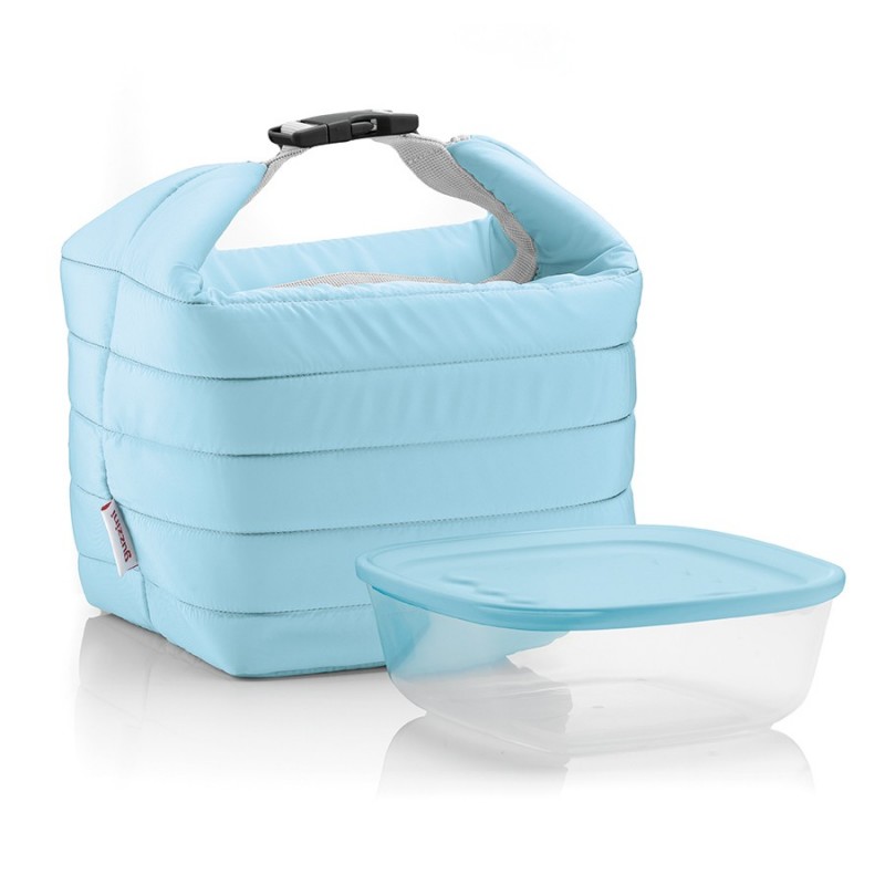 Дизайнеры Guzzini доказали, что сумка для обедов является не просто необходимым предметом на каждый день, но может стать еще и модным аксессуаром. Вся серия Handy отличается стильными цветами, компактной формой и удобной ручкой с полуавтоматической застежкой фастексом.Набор создан специально для тех, кто любит перекусить на ходу и хочет получать полезные вещества и ингредиенты, даже если находится в дороге. Внутри сумки - термоизоляционная фольга, а это значит, что вы сможете наслаждаться горячим супом или прохладным салатом, как будто только что достали их из печи или холодильника. Пищевой контейнер можно хранить в холодильнике, а также использовать в морозильной камере и микроволновой печи. Он полностью герметичен и при этом достаточно легко открывается. Объем - 1,4 л. И контейнер, и сумку можно использовать как вместе, так и по отдельности. Размеры контейнера: 19,6х19,6х7