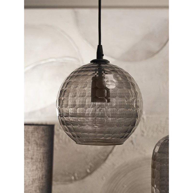 Светильник подвесной Mirage от дизайнерского бренда Bergenson Bjorn великолепно дополнит интерьер в современном стиле, поможет в создании приятного освещения и уютной атмосферы. Модель имеет основание из железа и плафон из стекла. Стенки плафона украшает выпуклый узор, который красиво преломляет свет, обеспечивая интересный визуальный эффект.Особенности и преимущества:- Сочетание элементов из металла и стекла гарантирует изделию устойчивость к износу и долговечность. - Благодаря непрозрачному плафону светильник излучает приглушенный, рассеянный свет, комфортный для глаз. - Классическое цветовое решение и современный дизайн позволяют вписать модель в различные варианты оформления.Материалы: стекло, железо. Размеры: 20х20х22 см. Длина провода: 1,5 м. Цвет: серый. Тип цоколя: Е27. Максимальная мощность ламп: 40 Вт. Степень пылевлагозащиты: IP20. Диаметр монтажной пластины: 11 см. Площадь освещения: 2,7 кв.м. Лампы в комплекте: нет.Для удаления пыли и загрязнений используйте сухую или слегка влажную мягкую ткань. Запрещается применение абразивных материалов и агрессивной бытовой химии. Перед очищением убедитесь, что светильник не подключен к сети. Осветительный прибор со степенью пылевлагозащиты IP20 можно устанавливать только в сухих помещениях, где отсутствует вероятность попадания на корпус брызг воды и исключается любое механическое воздействие.
