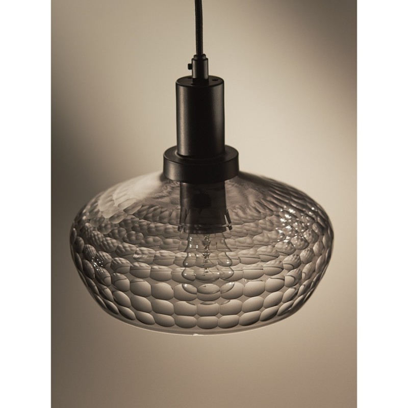 Светильник подвесной Mirage от дизайнерского бренда Bergenson Bjorn великолепно дополнит интерьер в современном стиле, поможет в создании приятного освещения и уютной атмосферы. Модель имеет основание из железа и плафон из стекла. Стенки плафона украшает выпуклый узор, который красиво преломляет свет, обеспечивая интересный визуальный эффект.Особенности и преимущества:- Сочетание элементов из металла и стекла гарантирует изделию устойчивость к износу и долговечность. - Благодаря непрозрачному плафону светильник излучает приглушенный, рассеянный свет, комфортный для глаз. - Классическое цветовое решение и современный дизайн позволяют вписать модель в различные варианты оформления.Материалы: стекло, железо. Размеры: 23х23х24 см. Длина провода: 1,5 м. Цвет: серый. Тип цоколя: Е27. Максимальная мощность ламп: 40 Вт. Степень пылевлагозащиты: IP20. Диаметр монтажной пластины: 11 см. Площадь освещения: 2,7 кв.м. Лампы в комплекте: нет.Для удаления пыли и загрязнений используйте сухую или слегка влажную мягкую ткань. Запрещается применение абразивных материалов и агрессивной бытовой химии. Перед очищением убедитесь, что светильник не подключен к сети. Осветительный прибор со степенью пылевлагозащиты IP20 можно устанавливать только в сухих помещениях, где отсутствует вероятность попадания на корпус брызг воды и исключается любое механическое воздействие.