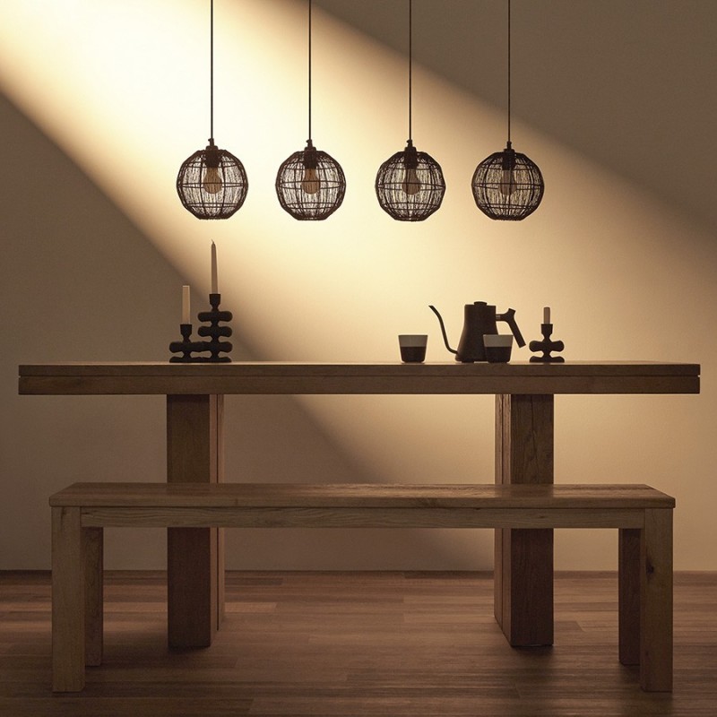 Светильник подвесной Vinger от бренда Bergenson Bjorn – прекрасный способ добавить интерьеру характер и индивидуальность. Подвес привлекает качественным исполнением и интересным дизайном. Его плафоны из металлической сетки рисуют на стенах и потолке живописные тени, создавая в помещении волшебную атмосферу.Особенности и преимущества:- Светильник с плафонами из железной сетки смотрится необычно и идеально подходит в качестве акцентного элемента. - Популярный цоколь Е27 подходит к большинству ламп, включая энергосберегающие источники света. - Несколько плафонов обеспечивают качественное и комфортное освещение.Материал: железо. Размеры: 130х20х110 см. Цвет: черный. Тип цоколя: 4хЕ27. Степень пылевлагозащиты: IP20. Максимальная мощность ламп: 4х25 Вт. Напряжение: 220-240 В. Площадь освещения: 6,7 кв.м. Длина провода: 109 см. Лампы в комплекте: нет.Для удаления пыли и загрязнений используйте сухую или слегка влажную мягкую ткань. Запрещается применение абразивных материалов и агрессивной бытовой химии. Перед очищением убедитесь, что светильник не подключен к сети. Осветительный прибор со степенью пылевлагозащиты IP20 можно устанавливать только в сухих помещениях, где отсутствует вероятность попадания на корпус брызг воды и исключается любое механическое воздействие.