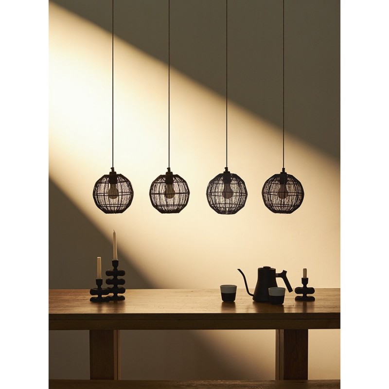Светильник подвесной Vinger от бренда Bergenson Bjorn – прекрасный способ добавить интерьеру характер и индивидуальность. Подвес привлекает качественным исполнением и интересным дизайном. Его плафоны из металлической сетки рисуют на стенах и потолке живописные тени, создавая в помещении волшебную атмосферу.Особенности и преимущества:- Светильник с плафонами из железной сетки смотрится необычно и идеально подходит в качестве акцентного элемента. - Популярный цоколь Е27 подходит к большинству ламп, включая энергосберегающие источники света. - Несколько плафонов обеспечивают качественное и комфортное освещение.Материал: железо. Размеры: 130х20х110 см. Цвет: черный. Тип цоколя: 4хЕ27. Степень пылевлагозащиты: IP20. Максимальная мощность ламп: 4х25 Вт. Напряжение: 220-240 В. Площадь освещения: 6,7 кв.м. Длина провода: 109 см. Лампы в комплекте: нет.Для удаления пыли и загрязнений используйте сухую или слегка влажную мягкую ткань. Запрещается применение абразивных материалов и агрессивной бытовой химии. Перед очищением убедитесь, что светильник не подключен к сети. Осветительный прибор со степенью пылевлагозащиты IP20 можно устанавливать только в сухих помещениях, где отсутствует вероятность попадания на корпус брызг воды и исключается любое механическое воздействие.