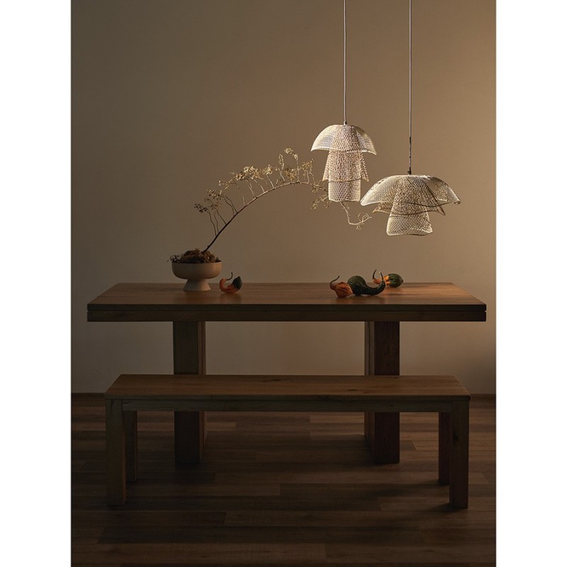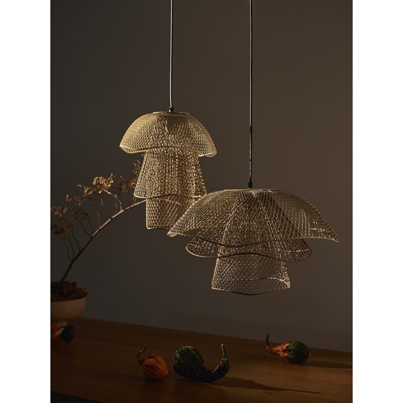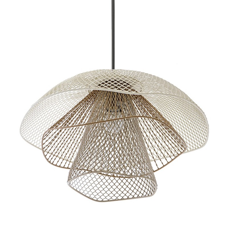 Светильник подвесной Vinger от бренда Bergenson Bjorn – прекрасный способ добавить интерьеру характер и индивидуальность. Подвес привлекает качественным исполнением и интересным дизайном. Трехуровневый плафон из металлической сетки рисует на стенах и потолке живописные тени, создавая в помещении волшебную атмосферу.Особенности и преимущества:- Светильник с плафоном из железной сетки смотрится необычно и идеально подходит в качестве акцентного элемента. - Возможность регулировки длины провода позволяет использовать светильник в помещениях с различной высотой потолка и для подсветки функциональных зон. - Популярный цоколь Е27 подходит к большинству ламп, включая энергосберегающие источники света. - Сетчатый плафон хорошо пропускает свет, но в то же время делает его более мягким и приятным для глаз.Материал: железо. Размеры светильника: 48х48х30 см. Размеры основания: 10х10х2 см. Цвет: белый/бежевый/золотой. Тип цоколя: Е27. Степень пылевлагозащиты: IP20. Максимальная мощность ламп: 25 Вт. Напряжение: 220-240 В. Длина подвеса: 50,8-127 см. Площадь освещения: 1,7 кв.м. Лампы в комплекте: нет.Для удаления пыли и загрязнений используйте сухую или слегка влажную мягкую ткань. Запрещается применение абразивных материалов и агрессивной бытовой химии. Перед очищением убедитесь, что светильник не подключен к сети. Осветительный прибор со степенью пылевлагозащиты IP20 можно устанавливать только в сухих помещениях, где отсутствует вероятность попадания на корпус брызг воды и исключается любое механическое воздействие.