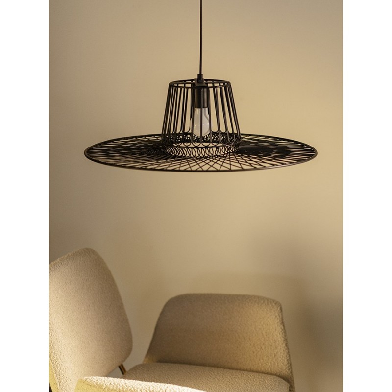 Светильник подвесной Vinger от бренда Bergenson Bjorn – прекрасный способ добавить интерьеру характер и индивидуальность. Подвес привлекает качественным исполнением и интересным дизайном. Его плафон из металлической сетки рисует на стенах и потолке живописные тени, создавая в помещении волшебную атмосферу.Особенности и преимущества:- Светильник с плафоном из железной сетки смотрится необычно и идеально подходит в качестве акцентного элемента. - Материалы изготовления устойчивы к коррозии и механическим повреждениям, благодаря чему подвес долго сохраняет привлекательный вид. - Популярный цоколь Е27 подходит к большинству ламп, включая энергосберегающие источники света.Материал: железо. Размеры светильника: 60,5х60,5х18 см. Размеры основания: 11,5х11,5х2 см. Цвет: черный. Тип цоколя: Е27. Степень пылевлагозащиты: IP20. Максимальная мощность ламп: 25 Вт. Напряжение: 230 В. Длина провода: 1,1 м. Площадь освещения: 1,7 кв.м. Лампы в комплекте: нет.Для удаления пыли и загрязнений используйте сухую или слегка влажную мягкую ткань. Запрещается применение абразивных материалов и агрессивной бытовой химии. Перед очищением убедитесь, что светильник не подключен к сети. Осветительный прибор со степенью пылевлагозащиты IP20 можно устанавливать только в сухих помещениях, где отсутствует вероятность попадания на корпус брызг воды и исключается любое механическое воздействие.