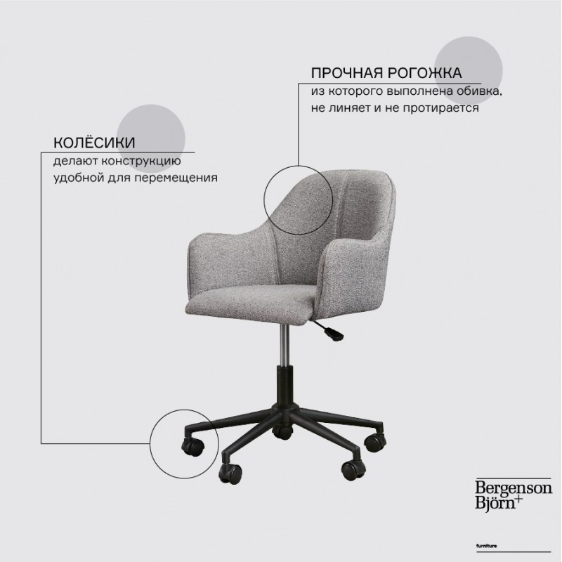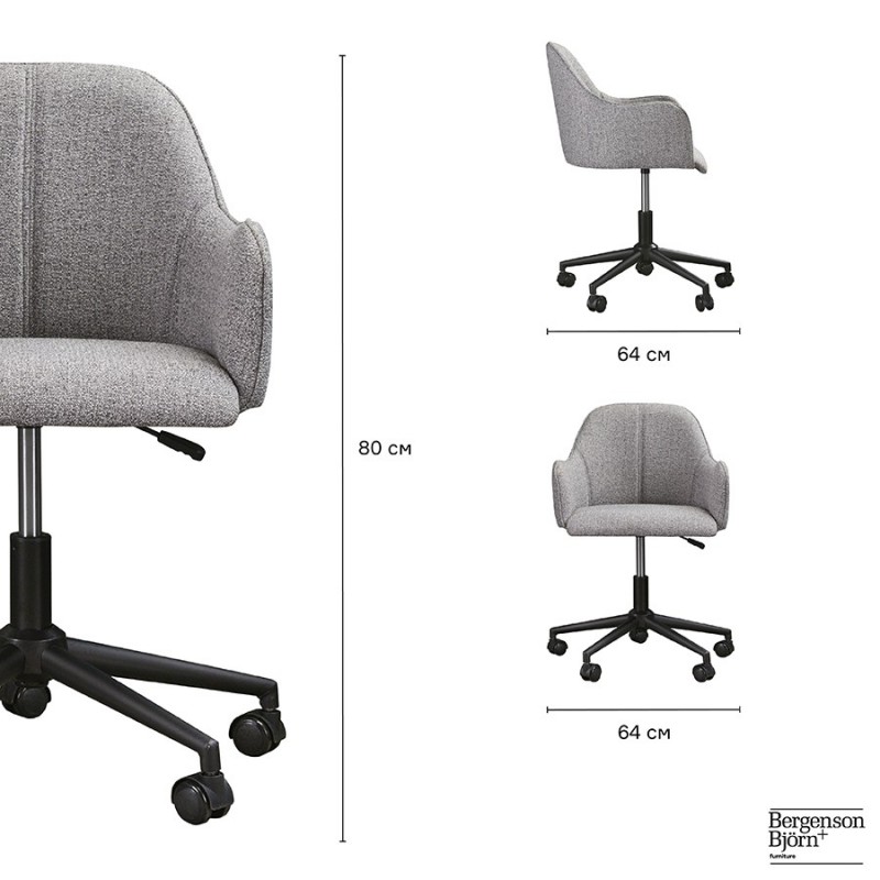 Кресло Isla имеет классический силуэт и нейтральный оттенок, за счет чего органично вписывается в различные варианты оформления интерьера. Наличие подлокотников и высокая спинка обеспечивают комфорт во время сидения. Особенности дизайна делают конструкцию устойчивой и надежной. Обивка из рогожки отличается износостойкостью, хорошо очищается от загрязнений и долго сохраняет первозданный вид. Мебель оснащена колесиками для удобного перемещения.Материалы: 100% полиэстер, фанера, пенополиуретан, железо. Максимальная нагрузка: 130 кг. Размеры: 64x64x80 см. Высота сиденья: максимальная 51 см, минимальная 42 см. Ширина сиденья: 44 см. Глубина сиденья: 41 см. Высота спинки: 37 см. Ширина спинки: 40 см. Максимальная нагрузка: 130 кг. Цвет: серый.Рекомендуется регулярно пылесосить мебель с помощью специальной насадки. Загрязнения можно удалять мягкой губкой или салфеткой с мыльным раствором воды.