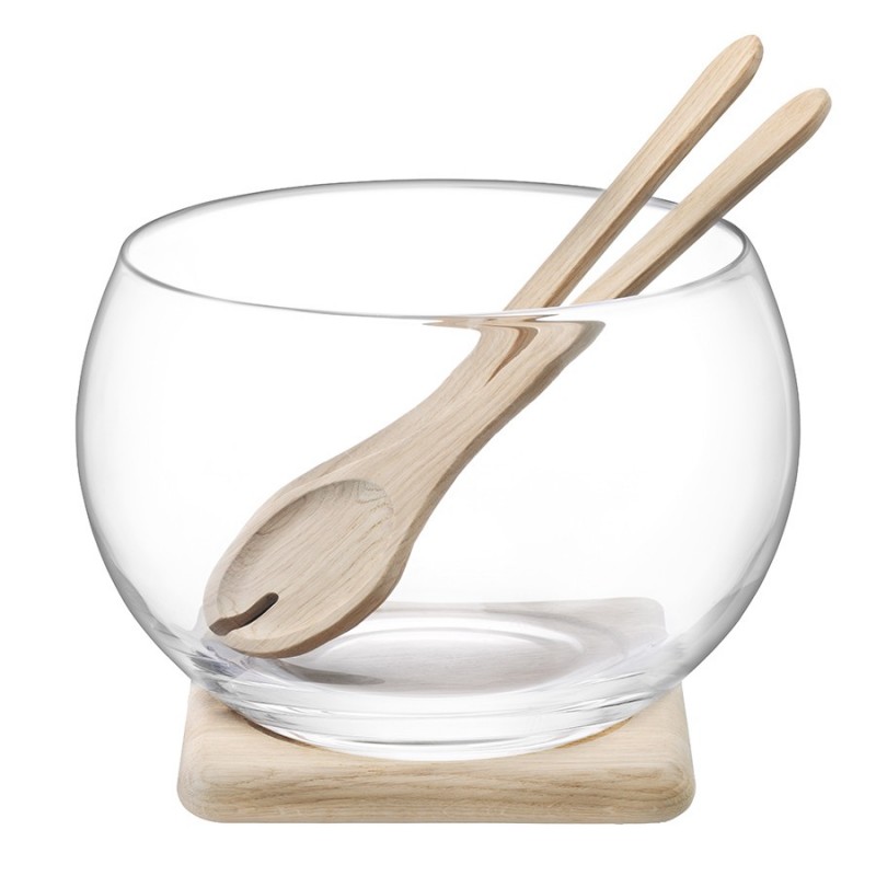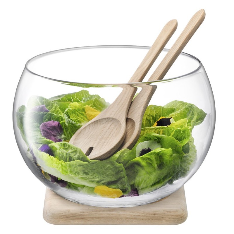 Элегантный набор из стеклянной чаши, ложек и подставки из натурального дуба идеально подойдет для подачи различных салатов.Serve — это элегантные формы, подчеркнутые кристальным блеском стекла ручной работы. Предметы коллекции подходят для сервировки в различных стилях. Линейка придется по душе всем, кто любит красивую и практичную посуду.Важно! Поскольку чаша изготавливается вручную, ее размер может незначительно отличаться и допускается наличие пузырьков в толще стекла: круглые < 3 мм, овальные < 5 мм и их небольшие скопления в виде пены. Также возможно наличие прожилок (видимых нитей) на стекле менее 50% длины окружности любого предмета. Все это не брак, а допустимые индивидуальные особенности товаров, произведенных ручным способом.Материал: выдувное стекло, дуб. Диаметр чаши: 27 см. Высота чаши: 18,5 см. Количество предметов в наборе: 4 шт.Чашу рекомендуется мыть вручную в теплой мыльной воде и вытирать насухо мягкой тканью. Подставку можно протирать влажной тканью.