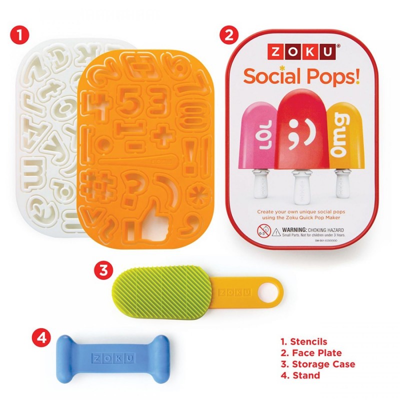 Создавайте оригинальные десерты с помощью набора Social Media Kit, украшая их забавными надписями, аббревиатурами, смайликами и лайками! Теперь каждая порция будет иметь свое уникальное оформление, позволяя вам легко определить, какой из замороженных соков кому принадлежит. Порадуйте своих друзей и знакомых не только вкусными, но и красивыми домашними десертами! Набор включает в себя: - 49 трафаретов; - 1 палочка для фруктов; - 1 «лицевую» пластину; - 1 подставку;Для создания собственных украшений нарежьте любой фрукт тонкими ломтиками, выберите нужный трафарет и выдавите его с помощью специальной палочки. Нанесите полученный узор на лицевую пластину и вставьте ее в любой охлажденный заранее Quick Pop Maker. Форма должна стоять на боку на подставке. Прижмите пластину к верхнему краю и подержите так 15-30 секунд. После этого готовьте мороженое как обычно. Не содержит вредных примесей и бисфенола-А. Моется вручную.