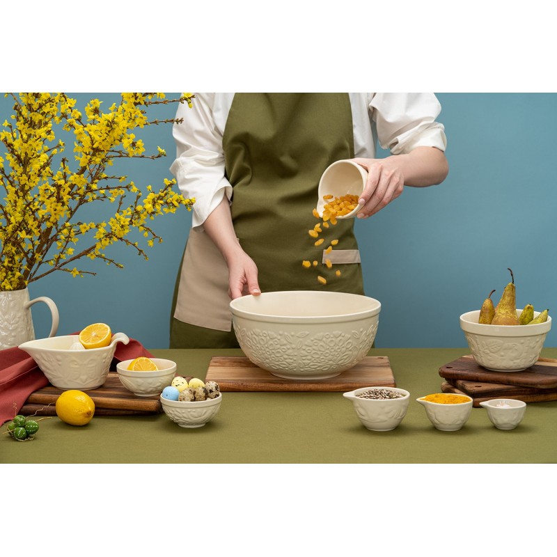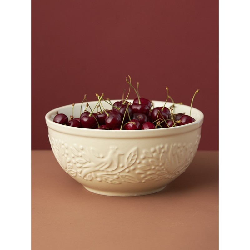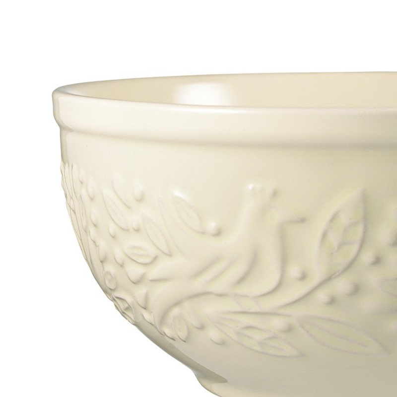 Миска из коллекции Birds of Paradise – качественная посуда из экологичной каменной керамики, которая облегчает процесс готовки и делает интерьер любой кухни более уютным. Отличительной особенностью серии является объемный узор природной тематики, добавляющий дизайну элегантные нотки. Благодаря высокой прочности и устойчивости материала к износу изделие не теряет привлекательный внешний вид на протяжении всего срока службы. Покрытие глазурью упрощает уход, обеспечивает декоративность и дополнительную защиту от внешних воздействий. Глубокая емкость идеально подходит для смешивания ингредиентов во время приготовления различных блюд.Наши продукты прошли испытания на отсутствие в составе свинца и кадмия в соответствии со стандартными тестами FDA.Коллекция Birds of Paradise разработана английской художницей Karen Wall, основным направлением творчества которой является создание иллюстраций для посуды, домашнего текстиля и детских книг. В основе дизайна – природные мотивы, вдохновленные традиционным фольклором Великобритании 19-го века. Атмосфера волшебного леса с райскими птицами погружает в мир добрых грез и фантазий, где всегда тепло, уютно и есть место чудесам.Материал: каменная керамика. Размеры: 24х24х11,3 см. Объем: 2,6 л. Цвет: кремовый.Можно использовать в микроволновой печи, духовке при температуре не более 230° C, а также замораживать при температуре не ниже -20° C. Допускается мытье в посудомоечной машине.