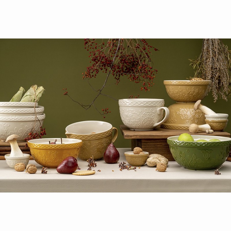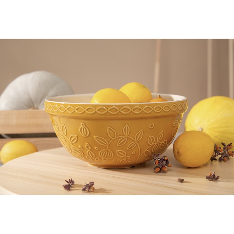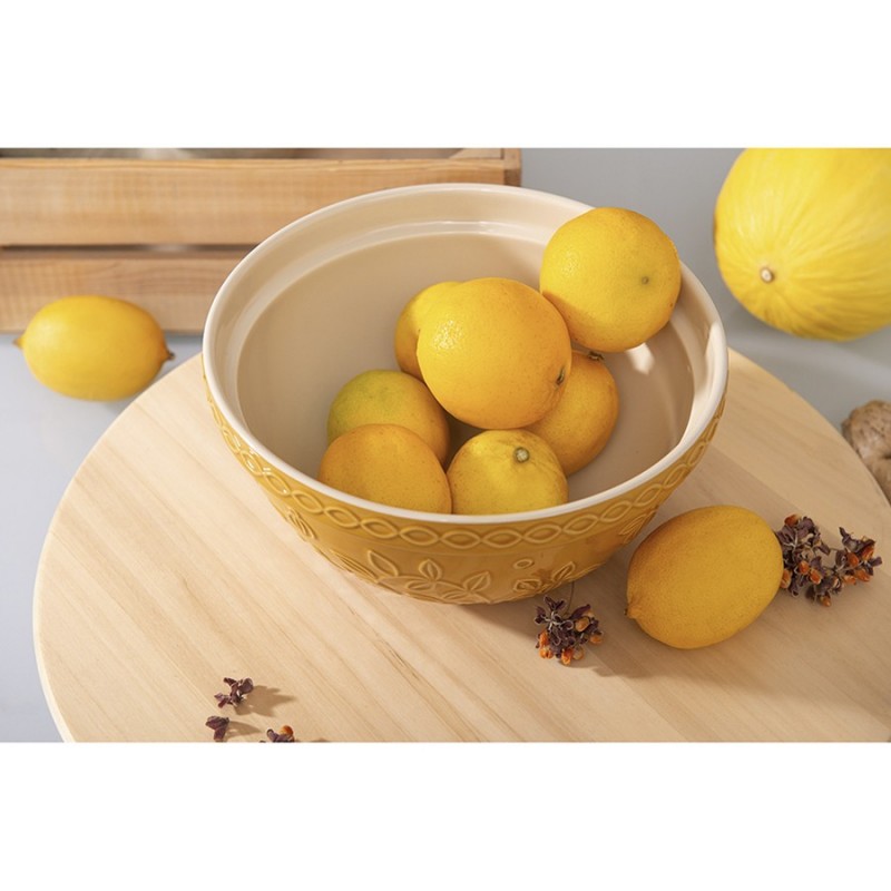 Миска горчичного цвета с рельефным узором Ягоды Тайги из коллекции russian north, 1,5 л (артикул 3222)