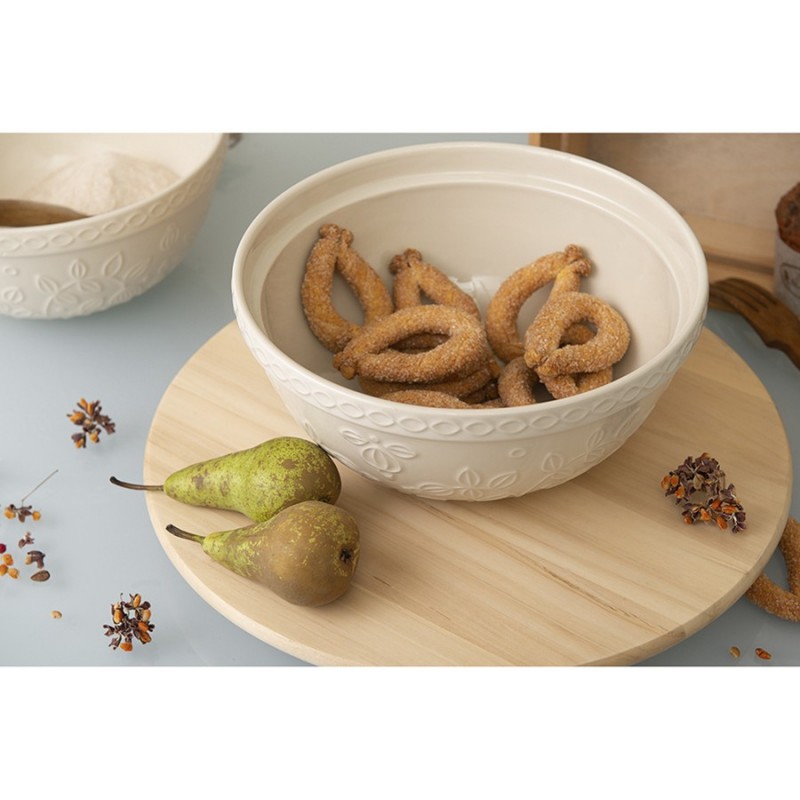 Миска кремового цвета Ягоды Тайги из коллекции Russian North облегчит процесс приготовления блюд, сделает кухонный интерьер более уютным и выигрышно подчеркнет выбранное стилевое решение. Глубокая чаша идеально подойдет для замешивания теста, смешивания ингредиентов, а также для складывания мытых овощей и фруктов и подачи их к столу. Глазурованная поверхность с чуть приглушенным глянцем выглядит благородно и вместе с тем очень практична – не повреждается при использовании и легко отмывается. Рельефный растительный узор в виде стилизованных веточек с ягодами и листьями делает дизайн интересным и запоминающимся.Миска, выполненная из прочной каменной керамики и покрытая глянцевой глазурью, устойчива к сколам и царапинам.Объем: 2,8 л.! Можно использовать в микроволновой печи. ! Можно мыть в посудомоечной машине. ! Можно использовать в духовке при температуре не более 160° C. ! Можно замораживать.