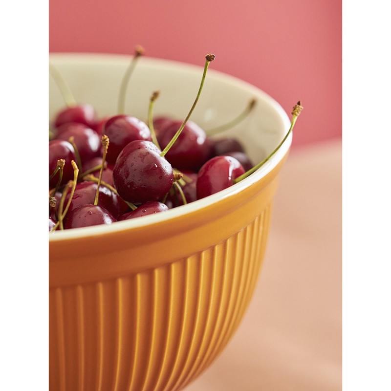 Миска из коллекции Soft Ripples пригодится при замешивании теста, смешивании ингредиентов, подойдет для складывания продуктов во время готовки или подачи к столу фруктов. Емкость из прочной, устойчивой к износу каменной керамики сохраняет привлекательный вид на протяжении всего срока эксплуатации. Материал является экологичным, не боится температурных перепадов, не впитывает запахи и загрязнения. Глазурованное покрытие легко очищается, обеспечивает изделию декоративность и защищает от внешних воздействий. Рельефный узор на внешней поверхности стенок и интересное цветовое сочетание делают дизайн оригинальным.Наши продукты прошли испытания на отсутствие в составе свинца и кадмия в соответствии со стандартными тестами FDA.Материал: каменная керамика. Объем: 3,9 л. Размеры: 26х26х13,5 см. Цвет: карамельный.Допускается мытье в посудомоечной машине, заморозка, использование в микроволновой печи и духовке при температуре не выше 230 °C.