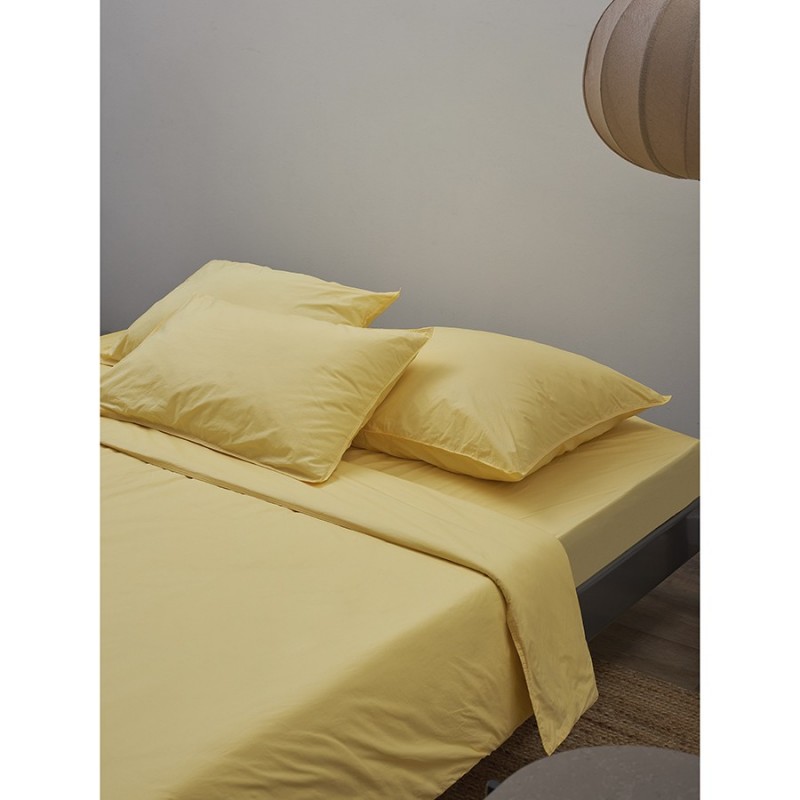 Постельное белье из коллекции Essential позволяет погрузиться в мир гармонии и уюта. Простыня на резинке из стираного перкаля светло-желтого цвета дарит приятные тактильные ощущения, радуя своим премиальным качеством. Мягкая фактура, натуральный состав и дышащие свойства материала создают идеальные условия для комфортного отдыха и сна.Особенности и преимущества:- Экологичный, гипоаллергенный материал с приятной на ощупь фактурой обладает высокой прочностью, не электризуется и не притягивает пыль. - Перкаль хорошо пропускает воздух, что делает постельное белье из него идеальным выбором как для жаркой, так и прохладной погоды. - Качественная отделка и прочные швы гарантируют изделию долгий срок службы и привлекательный вид даже после многократных стирок. - Резинка расположена по периметру простыни, что обеспечивает ей плотное прилегание к матрасу, предотвращая скольжение материала и образование складок.Материал: 100% хлопок. Плотность: 250 ТС. Размер: 160х200х30 см.! Максимальная температура стирки 40° C ! Гладить при максимальной температуре 150° C ! Возможна барабанная сушка при низкой температуре ! Не отбеливать ! Сухая чистка запрещена