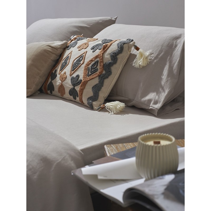 Простыня на резинке изо льна и хлопка серо-бежевого цвета из коллекции Essential – стильное постельное белье высочайшего качества, которое подарит ощущение комфорта во время сна и привнесет в интерьер спальни природную элегантность.Особенности и преимущества:- Материал, из которого выполнено изделие, объединяет в себе мягкость хлопка и высокую прочность льна. - Ткань устойчива к износу и деформации, имеет приятную на ощупь фактуру, не вызывает аллергический реакций, не накапливает статическое электричество. - Резинка расположена по углам простыни, что обеспечивает ей хорошую посадку, а само изделие легче гладить и хранить. - Качественная отделка и прочные швы гарантируют постельному белью долгий срок службы и привлекательный вид даже после многократных стирок.Состав: лен, хлопок. Размер: 160х200х30 см. Плотность: поверхностная – 145 г/м2; линейная – 110 ТС.! Максимальная температура стирки 30° C ! Гладить при максимальной температуре 150° C ! Барабанная сушка запрещена ! Не отбеливать ! Возможна сухая чистка
