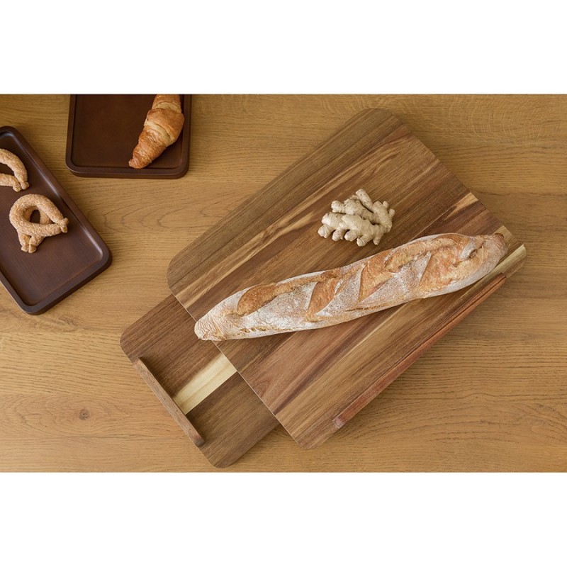 Доска разделочная Fix&Cut из натуральной древесины акации – стильный предмет интерьера и незаменимый помощник на кухне, который позволит вам чувствовать себя настоящим шеф-поваром. Доска идеально подходит для шинковки, нарезки различных продуктов, работы с тестом и за счет особенностей дизайна обладает рядом преимуществ.Особенности и преимущества:- Доска выполнена из акации – благородной породы древесины, устойчивой к перепадам влажности. - Благодаря специальной конструкции ее можно использовать с двух сторон и надежно фиксировать, прижимая к краю столешницы. - Фиксатор работает и как подставка, удерживая доску в нужном положении, чтобы она не скользила по столу. - Одна сторона доски имеет идеально гладкую поверхность, предназначенную для раскатывания теста. - Небольшие бортики задерживают сок, сохраняя рабочее место чистым во время приготовления пищи. - Экологичный материал гарантирует безопасность для вашего здоровья и окружающей среды.Приобретая разделочную доску Fix&Cut, вы делаете выбор в пользу качества, функциональности и стиля. Окружите себя вещами, которые создают атмосферу уюта, и наслаждайтесь каждым моментом, проведенным на своей кухне.Материал: акация. Размеры: 46х36х2,5 см. Цвет: коричневый.Доску рекомендуется мыть вручную с помощью мягкой губки в теплой мыльной воде. После очищения аксессуар необходимо вытереть насухо полотенцем и поставить на хранение в хорошо проветриваемое место. Запрещается долгое замачивание, применение абразивных материалов, агрессивной бытовой химии и мытье в посудомоечной машине. Чтобы доска дольше сохраняла привлекательный вид, 1-2 раза в месяц необходимо протирать ее минеральным маслом. Состав нужно наносить на сухую поверхность и втирать до полного впитывания.