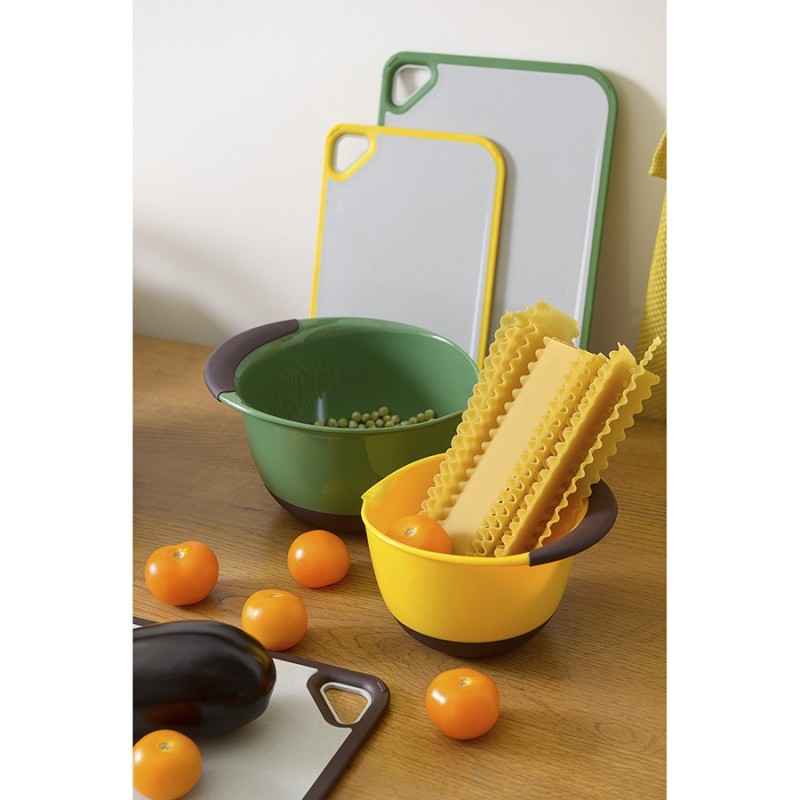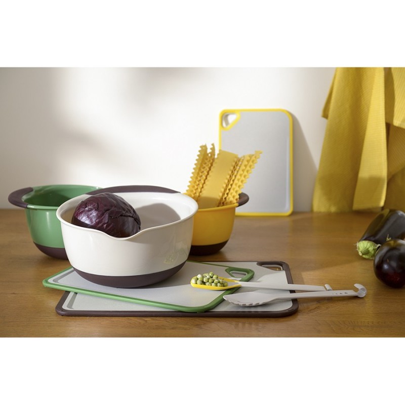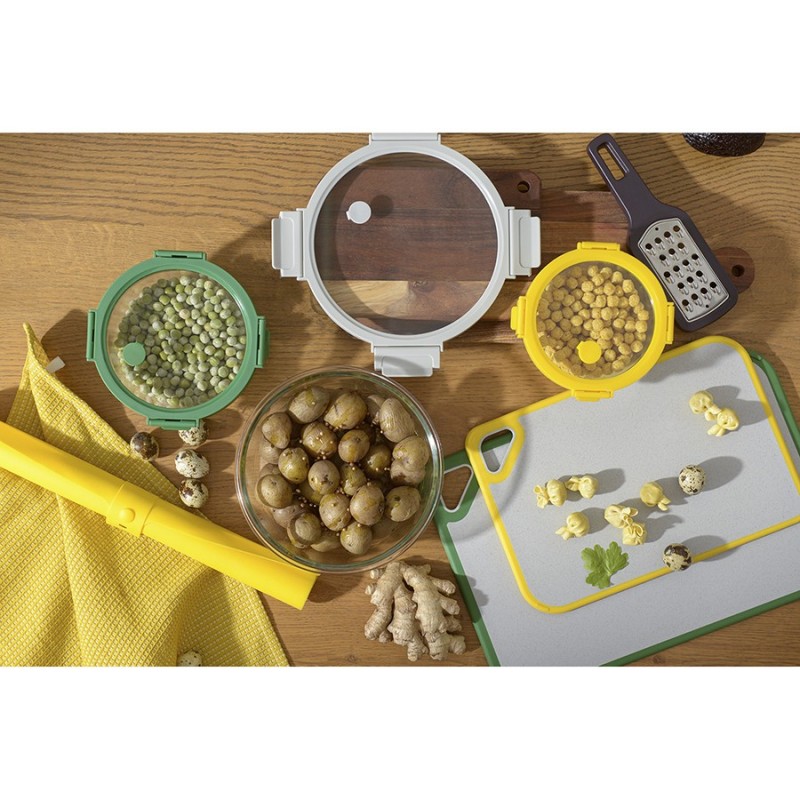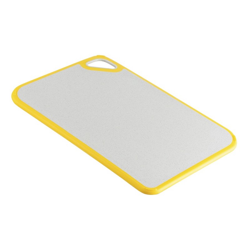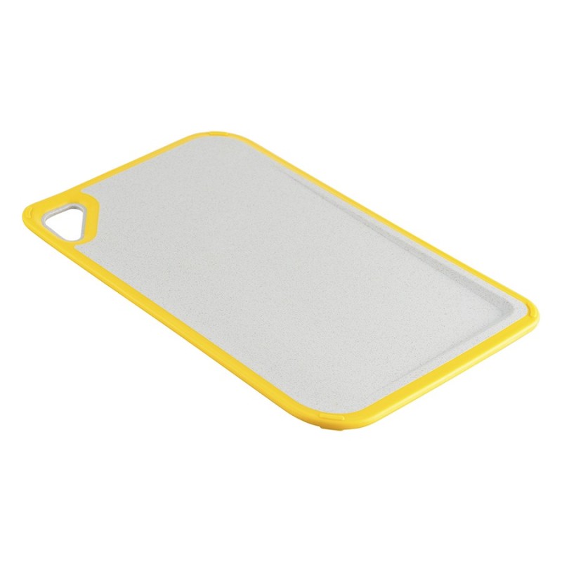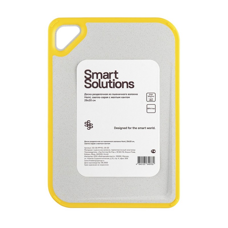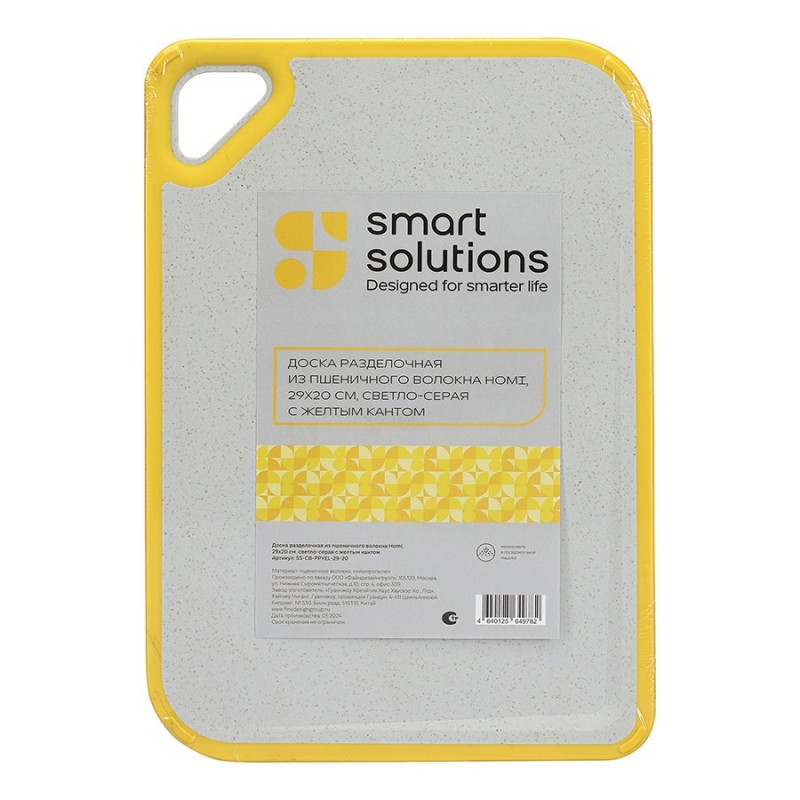 Доска разделочная Homi из пшеничного волокна – идеальное сочетание экологичности, практичности и стильного дизайна. Она станет верным помощником в кулинарных экспериментах и позволит наслаждаться процессом готовки.Особенности и преимущества:- Материал является экологичным, не содержит BPA, не трескается, не деформируется, не впитывает запахи и загрязнения, не тупит лезвия ножей. - Доска легко моется и не скользит по столу во время использования благодаря окантовке из прорезиненного материала. - Небольшой желобок, расположенный по краю, задерживает жидкость, обеспечивая чистоту на рабочей поверхности. - Доска имеет специальное отверстие для удобного хранения на подвесных держателях.Материалы: пшеничное волокно, полипропилен, термопластичный эластомер. Размеры: 29х20х0,75 см. Цвет: светло-серый с желтым кантом.Доску можно мыть в посудомоечной машине.