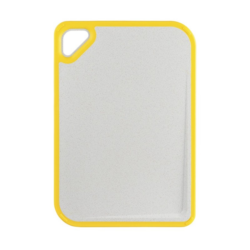 Доска разделочная Homi из пшеничного волокна – идеальное сочетание экологичности, практичности и стильного дизайна. Она станет верным помощником в кулинарных экспериментах и позволит наслаждаться процессом готовки.Особенности и преимущества:- Материал является экологичным, не содержит BPA, не трескается, не деформируется, не впитывает запахи и загрязнения, не тупит лезвия ножей. - Доска легко моется и не скользит по столу во время использования благодаря окантовке из прорезиненного материала. - Небольшой желобок, расположенный по краю, задерживает жидкость, обеспечивая чистоту на рабочей поверхности. - Доска имеет специальное отверстие для удобного хранения на подвесных держателях.Материалы: пшеничное волокно, полипропилен, термопластичный эластомер. Размеры: 29х20х0,75 см. Цвет: светло-серый с желтым кантом.Доску можно мыть в посудомоечной машине.