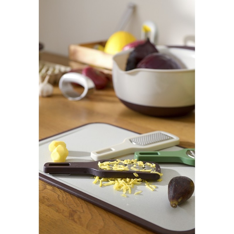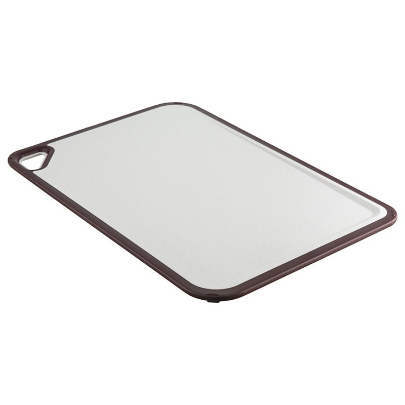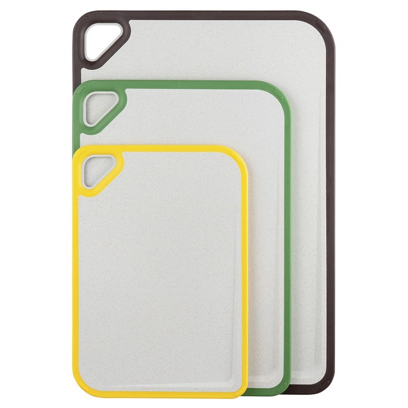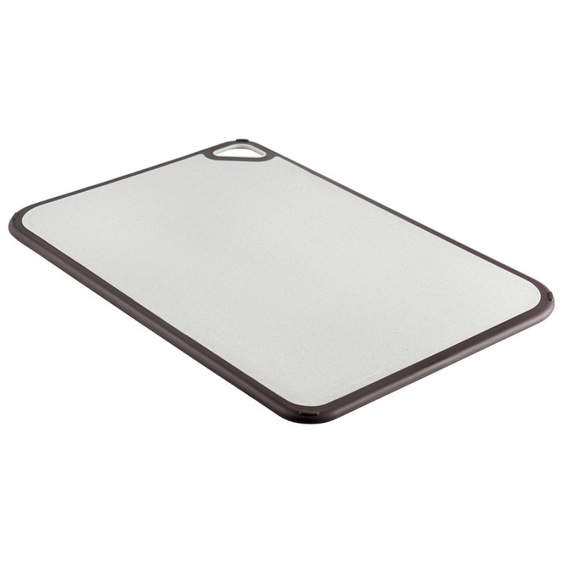 Доска разделочная Homi из пшеничного волокна – идеальное сочетание экологичности, практичности и стильного дизайна. Она станет верным помощником в кулинарных экспериментах и позволит наслаждаться процессом готовки.Особенности и преимущества:- Материал является экологичным, не содержит BPA, не трескается, не деформируется, не впитывает запахи и загрязнения, не тупит лезвия ножей. - Доска легко моется и не скользит по столу во время использования благодаря окантовке из прорезиненного материала. - Небольшой желобок, расположенный по краю, задерживает жидкость, обеспечивая чистоту на рабочей поверхности. - Доска имеет специальное отверстие для удобного хранения на подвесных держателях.Материалы: пшеничное волокно, полипропилен, термопластичный эластомер. Размеры: 44х30х0,95 см. Цвет: светло-серый с темно-сливовым кантом.Доску можно мыть в посудомоечной машине.