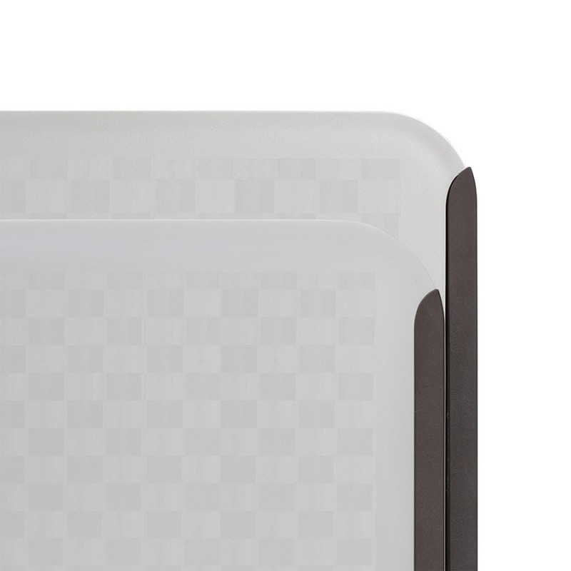 Набор SmartChef от дизайнерского бренда Smart Solutions включает в себя две разделочные доски различных размеров и специальную подставку для их удобного размещения.Особенности и преимущества:- Доски из полипропилена обладают прочностью, имеют небольшой вес, простые в уходе. - Благодаря резиновым вставкам аксессуары надежно фиксируются на столе и не скользят во время использования. - Вставки выполнены методом двухкомпонентного литья, поэтому составляют единое целое с досками. - Одна сторона досок имеет шероховатое покрытие для удобного нарезания продуктов, вторая – разметку для получения ровных кусочков. - Толщина досок составляет 10 мм, это делает их устойчивыми к деформации во время интенсивных задач, таких как отбивание мяса и прочих. - Поверхности с уклоном и специальные бортики задерживают жидкость внутри, не давая ей испачкать рабочую поверхность. - Специальная конструкция подставки позволяет надежно удерживать доски, давая им хорошо просохнуть, и хранить их как в вертикальном, так и в горизонтальном положении. - Благодаря компактным размерам подставка не занимает много места на столешнице.Коллекция кухонных инструментов SmartChef объединяет в себе лаконичный дизайн, высокую функциональность и инновационные материалы, чтобы приготовление блюд доставляло удовольствие, а пространство кухни выглядело стильным и организованным. Поверхности софт-тач дарят приятные тактильные ощущения и улучшают эргономику продуктов, делая их более удобными в использовании. Главное – все предметы специально разработаны для использования с посудой, имеющей антипригарное покрытие.Материалы: доски – полипропилен, термопластичная резина; подставка – нейлон, силикон. Размеры: доски – 40х31 см и 36х25 см; подставка – 27х8,5х5,5 см.Доски и подставку можно мыть вручную и в посудомоечной машине.