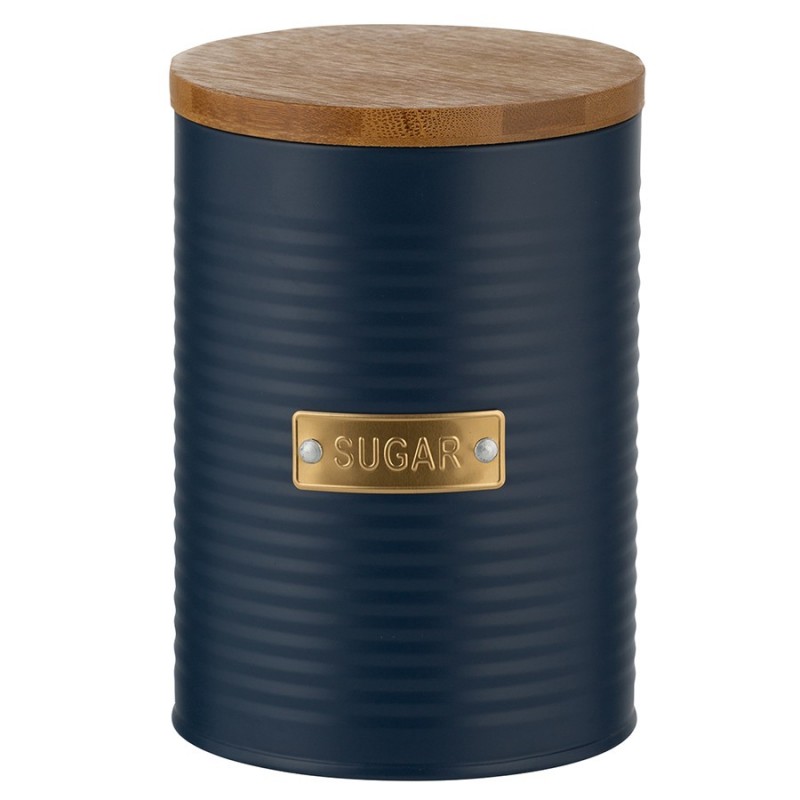 Сахарница из коллекции Otto – удобное решение для хранения сыпучих продуктов и стильный элемент кухонного интерьера. Эргономичный контейнер выполнен из прочной, устойчивой к коррозии и деформации углеродистой стали. Плотно прилегающая бамбуковая крышка с силиконовым уплотнителем защищает содержимое банки от заветривания и отсыревания. Красивое сочетание золотистого декора с матовым покрытием насыщенного синего цвета делает дизайн интересным. Такая посуда отлично вписывается в интерьер, оформленный в классическом и современном стиле.Материалы: углеродистая сталь, бамбук, силикон. Объем: 1,4 л. Цвет: синий.Перед первым использованием емкость рекомендуется хорошо вымыть вручную в теплой воде с мягким моющим средством. Запрещается применение абразивных материалов и агрессивной бытовой химии.