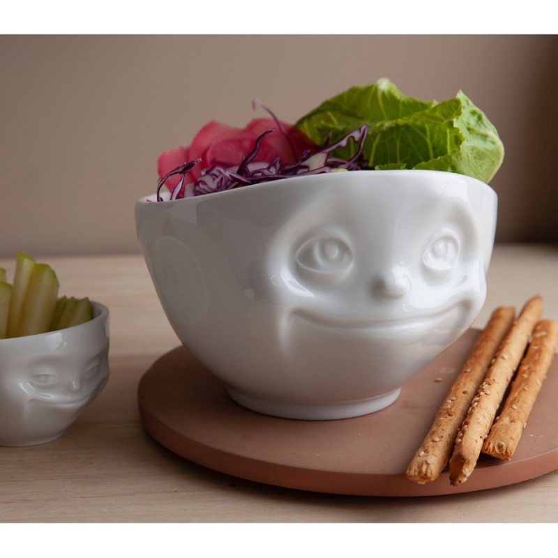 Оригинальная чаша с забавной рожицей отлично подойдет для подачи салатов, закусок, первых блюд.Чаша выполнена из высококачественного фарфора. Объем: 500 мл. Поставляется в красивой подарочной коробке.Можно мыть в посудомоечной машине и ставить в микроволновую печь.