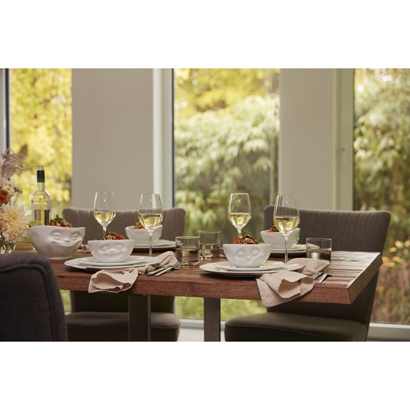 Оригинальная чаша с забавной рожицей отлично подойдет для подачи салатов, закусок, первых блюд.Чаша выполнена из высококачественного фарфора. Объем: 1000 мл. Поставляется в красивой подарочной коробке.Можно мыть в посудомоечной машине и ставить в микроволновую печь.