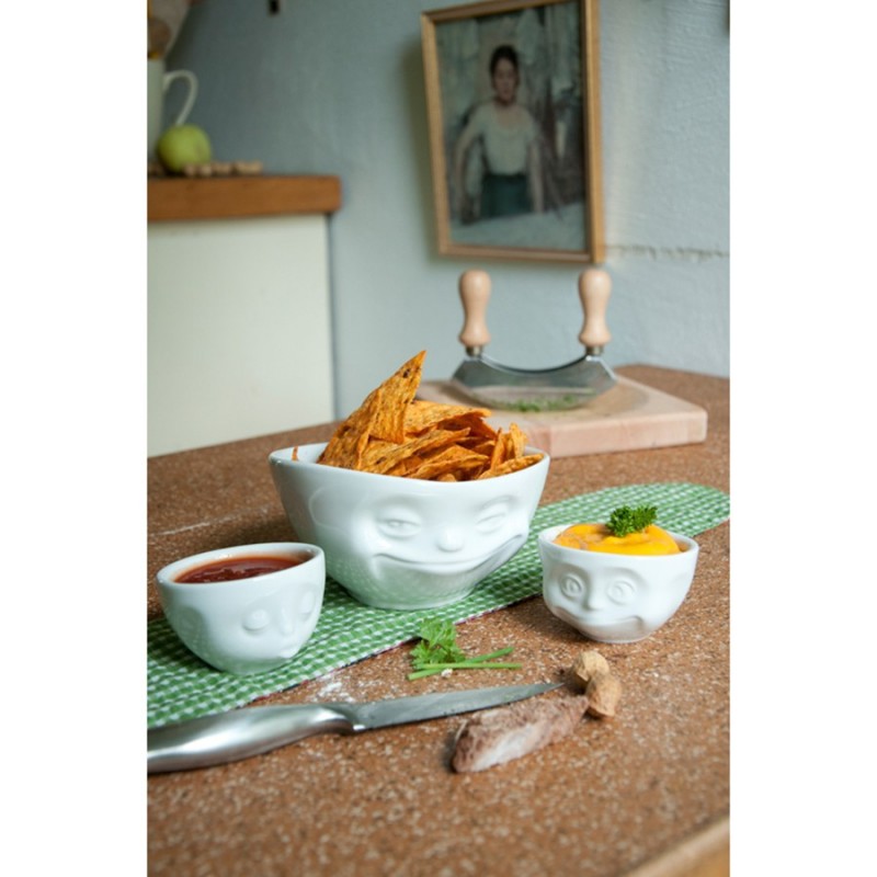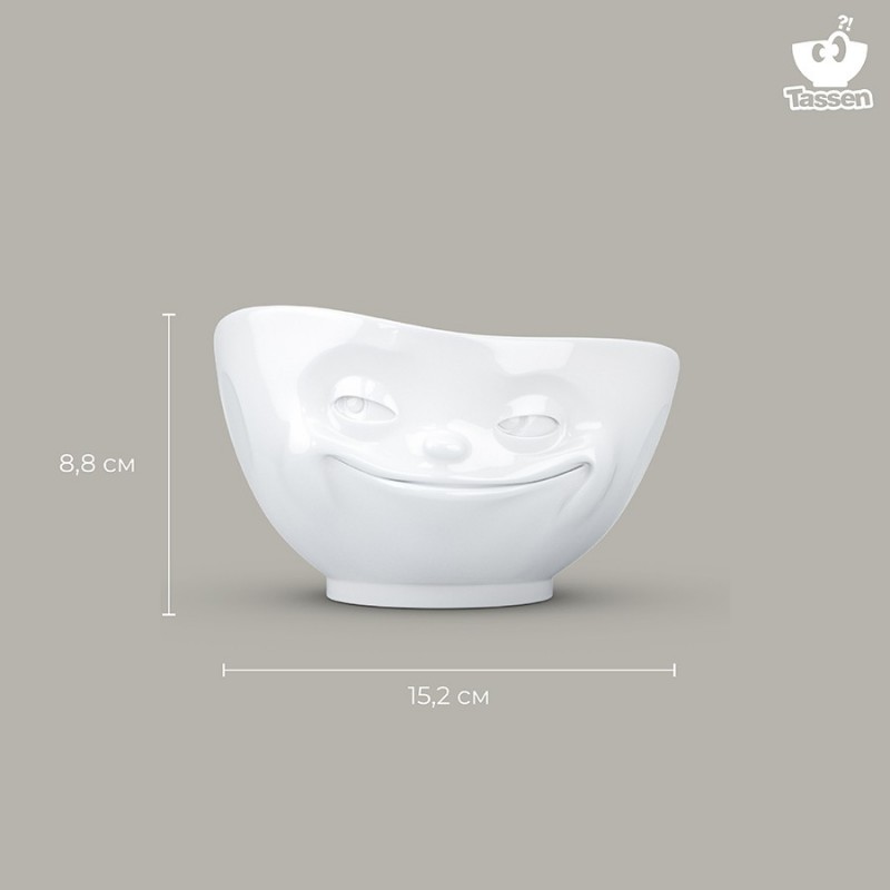 Оригинальная чаша с улыбающейся рожицей отлично подойдет для подачи салатов, закусок, первых блюд.Чаша выполнена из высококачественного фарфора. Объем: 500 мл. Поставляется в красивой подарочной коробке.Можно мыть в посудомоечной машине и ставить в микроволновую печь.