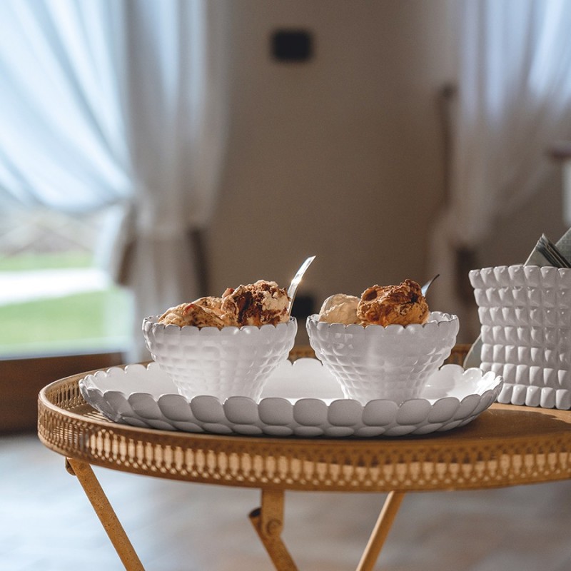 Чаша универсальная из коллекции Tiffany добавит яркий акцент в любую сервировку. Ее можно использовать для подачи варенья, джема, меда, орехов, драже, конфет и других сладостей. Благодаря высоким эксплуатационным свойствам материала посуда идеально подходит для сервировки на свежем воздухе.Изделие выполнено из сверхпрочного пластика, который не боится износа и повреждений. Материал не содержит вредных примесей и бисфенола-А.Коллекция Tiffany от итальянского бренда Guzzini – это воплощение роскоши, оригинальности и утонченного вкуса. Создавая эту линейку, дизайнеры Пио и Тито Тозо вдохновлялись идеей непреходящего стиля и безупречности.Материал: пластик SAN. Объем: 300 мл. Размеры: 11,6х11,6х7 см. Цвет: серо-бежевый.Можно мыть в посудомоечной машине в режиме деликатной мойки.