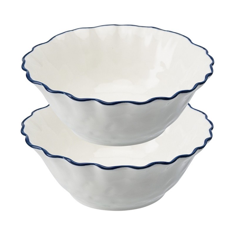 Салатники из коллекции Santorini от бренда Liberty Jones воплощают в себе элегантность посуды из фарфора, привлекая необычным дизайном с контрастными акцентами.Особенности и преимущества:- Фарфор является прочным, устойчивым к износу материалом, который сохраняет презентабельный вид долгие годы. - Акцент в виде контрастной каймы и легкий рельеф делают дизайн интересным и запоминающимся. - Идеально гладкая поверхность и высокая сопротивляемость материала к химическим воздействиям обеспечивают простой уход. - Белая посуда отлично гармонирует с предметами сервировки любой цветовой гаммы.Коллекция Santorini великолепно передает атмосферу уединенного греческого острова, известного своими завораживающими видами и удивительной архитектурой. Оттенки белого и синего напоминают о бескрайнем море и уютных домиках на скалах, а необычная “мятая” фактура фарфора ассоциируется с каменистыми склонами и живописными утесами.Материал: фарфор. Размеры: 16х16х6 см. Объем: 500 мл. Количество в наборе: 2 шт.Можно мыть в посудомоечной машине, замораживать, использовать в микроволновой печи и духовке при температуре не более 180° C.