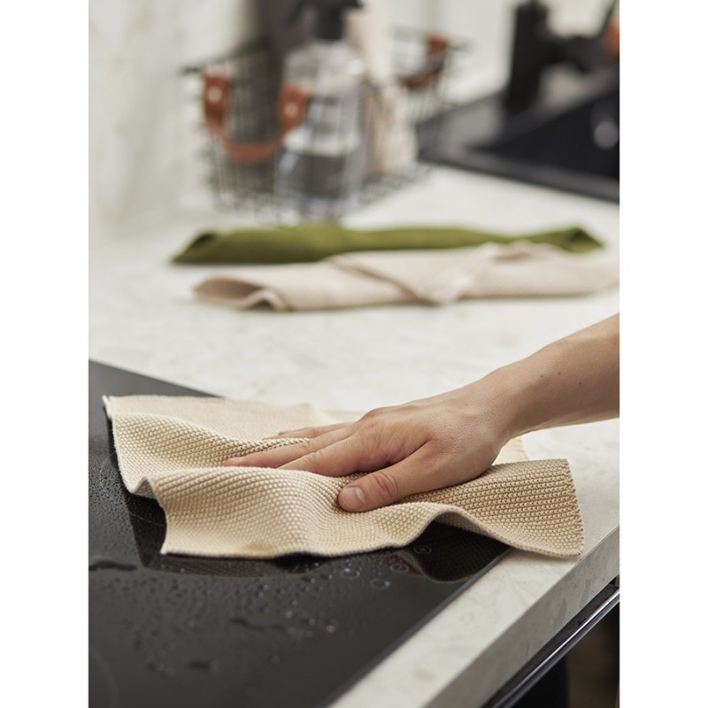 Вязаные салфетки для уборки и мытья посуды из коллекции Essential – не просто предметы домашнего обихода, а удачное сочетание практичности и высокого качества. Добавьте их в свой арсенал и наслаждайтесь идеальным порядком на кухне каждый день.Особенности и преимущества:- Изготовлены из 100% хлопка – безопасного, прочного, практичного и долговечного материала. - Имеют оптимальные размеры, что позволяет использовать их для разнообразных задач. - Легко стираются, что делает их идеальным вариантом для ежедневного применения. - Выполнены в нейтральных бежевом и оливковом цветах, которые подходят для любого интерьера.Материал: 100% хлопок. Плотность: 555 г/м2. Размеры: 28х28 см.! Деликатная стирка при температуре 60° C ! Гладить при максимальной температуре 110° C ! Возможна барабанная сушка при низкой температуре ! Не отбеливать ! Сухая чистка запрещена