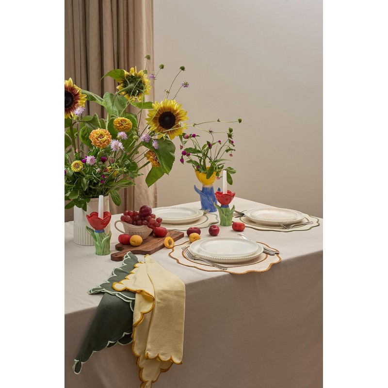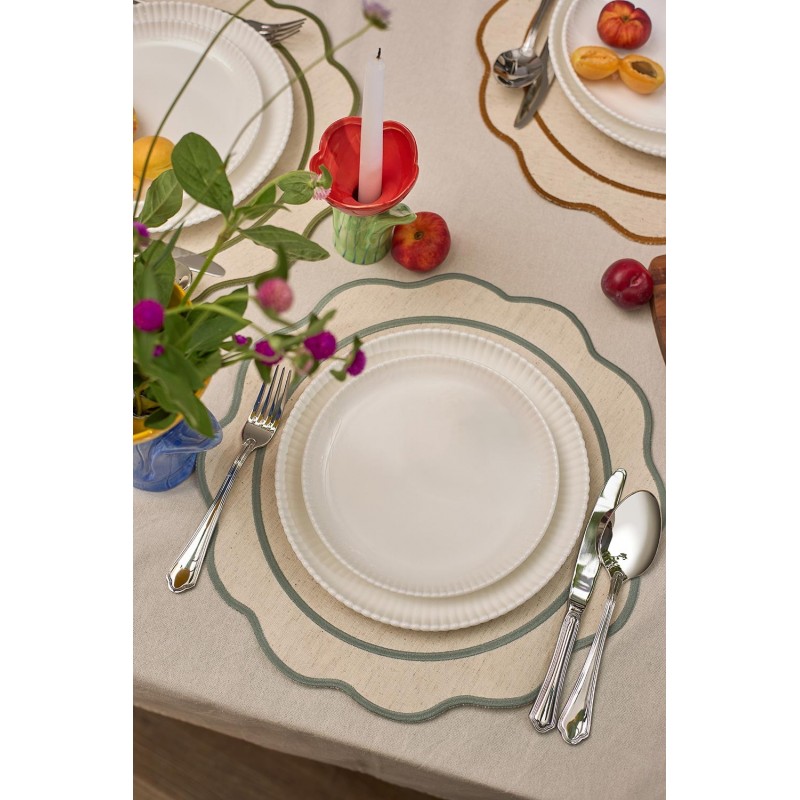 Салфетка под приборы Anemone из коллекции Trendy Ruffles с кантом серого цвета сделает любую сервировку стильной, позволив экспериментировать с текстурами и формами. Текстиль с волнистой отделкой, напоминающей изящные раковины морских гребешков, стал ярким элементом стиля Ар Деко – и сейчас возвращается в моду, появляясь в самых актуальных интерьерных решениях.Особенности и преимущества:- Выполнена из экологичных и долговечных материалов – смеси хлопка и льна. - Имеет трендовый дизайн, что позволяет использовать ее в качестве акцента. - Выдерживает многократные стирки, сохраняя привлекательный вид.Материалы: 90% хлопок, 10% лён. Диаметр: 38 см.! Деликатная стирка при температуре 30° C ! Гладить при максимальной температуре 110° C ! Сушить в тени (без попадания прямых солнечных лучей) ! Не отбеливать ! Сухая чистка запрещена