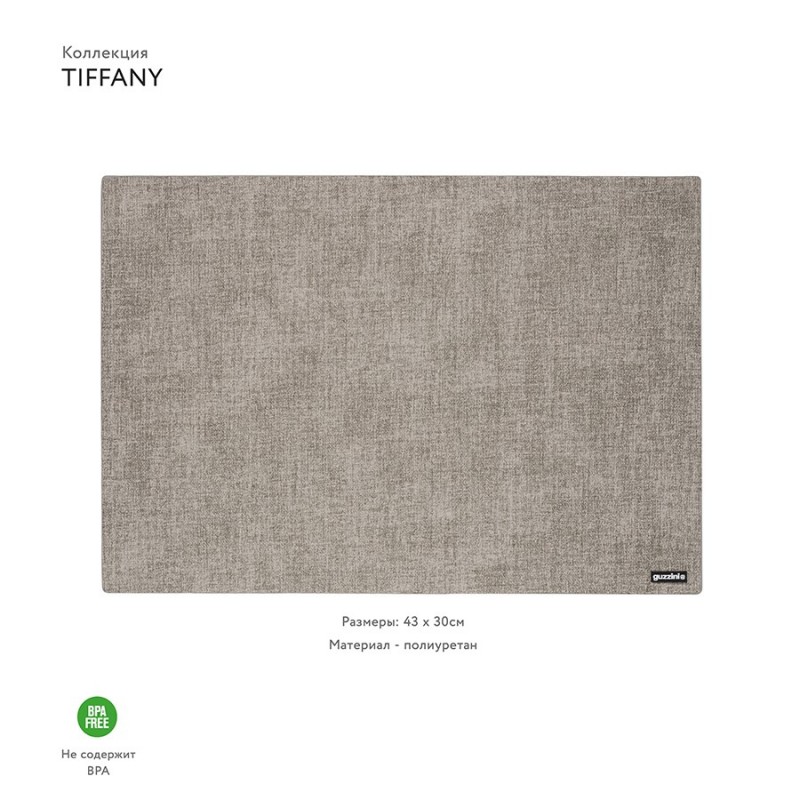 Подстановочная салфетка Tiffany – стильный аксессуар, который поможет красиво накрыть на стол, обозначить места для каждого домочадца или гостя, а также защитить поверхность мебели от загрязнений и повреждений. Изделие из полиуретана обладает прочностью, устойчивостью к воздействию влаги и высоких температур, долго сохраняет привлекательный вид и легко моется обычной водой. Салфетка может использоваться с двух сторон.Материал: полиуретан. Размеры: 43х30 см. Цвет: серый.Рекомендуется очищать вручную в теплой мыльной воде.