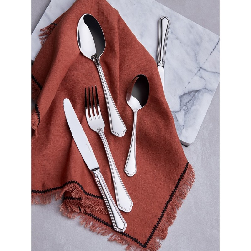 Sonata – удачное сочетание классического дизайна и высокой практичности. Такие столовые приборы не выходят из моды и легко вписываются в различные варианты сервировки, будь то обычный семейный ужин или торжественное мероприятие. Набор состоит из 16 предметов и включает все необходимое для обслуживания 4-х человек.Особенности и преимущества:- Сталь 18/10 характеризуется высокой прочностью, стойкостью к коррозии, благодаря чему изделия из нее сохраняет привлекательный вид долгие годы. - Сталь 13/0, обогащенная 13% хрома, обеспечивает исключительную остроту и долговечность режущей кромки. - Зеркальная полировка не только придает блеск, но и облегчает уход за приборами, позволяя легко удалять с их поверхности пятна и отпечатки пальцев.Материалы: нержавеющая сталь: 18/10 (304), нержавеющая сталь 13/0 (420). Размеры: Нож: длина – 23,1 см; ширина – 2,1 см; толщина – 2 мм; вес – 110,6 г. Вилка: длина – 20,7 см; ширина – 2,7 см; толщина – 3 мм. Ложка: длина – 20,8 см; ширина – 4,6 см; толщина – 2 мм. Чайная ложка: длина – 16,4 см; ширина – 3,7 см; толщина – 2 мм. Цвет: серебристый. Количество предметов в наборе: 16 шт.Приборы можно мыть в посудомоечной машине. Не использовать в микроволновке и на открытом огне.