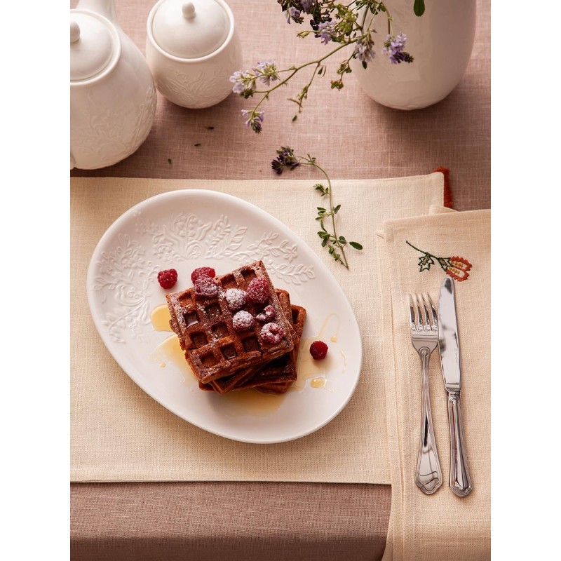 Тарелка сервировочная English Gardens – выбор настоящих эстетов и возможность привнести в оформление стола частичку природной элегантности. Плавные линии, мягкие формы и утонченный цветочный узор создают ощущение свежести и легкости, а белый цвет фарфора привлекает своей безупречностью и чистотой.Особенности и преимущества:- Тарелка сервировочная идеально подходит как для повседневного использования, так и для особых случаев. - Чистое сырье высочайшего качества и собственная формула глазуровки с обжигом при температуре 1250 °C делают изделие из фарфора особо прочным, устойчивым к растрескиванию и появлению сколов. - Глазурь и декор не тускнеют со временем, сохраняя первоначальный цвет и блеск. - Продукт прошел испытание на отсутствие в составе свинца и кадмия в соответствии со стандартными тестами FDA. - Коллекция English Gardens вдохновляет на творчество в сервировке, позволяя легко экспериментировать с цветами, текстурами и стилями, создавая красивые композиции и особую атмосферу за столом.Материал: фарфор. Размеры: 30x22x4,5 см. Вес: 860 г.Можно мыть в посудомоечной машине в деликатном режиме с использованием мягких моющих средств.