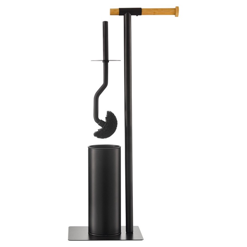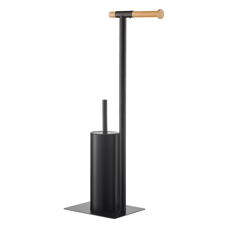 Держатель для туалетной бумаги с ершиком Mats от бренда Bergenson Bjorn представляет собой стильную и продуманную до мелочей конструкцию, которая прекрасно впишется в интерьер любого современного санузла. Сочетание элементов из железа и бамбука обеспечивает напольному аксессуару практичность, долговечность и интересный вид. Щетка с изогнутой рукояткой удобно сидит в руке и позволяет качественно очищать унитаз в труднодоступных местах. Внутренний контейнер из пластика защищает металлический корпус от прямого контакта с водой и загрязнениями, легко моется. За счет минималистичного дизайна и классического цветового решения модель отлично сочетается с различными вариантами оформления помещения.Материал: железо, бамбук. Размеры: 22х18х67 см. Цвет: черный.Пыль и загрязнения рекомендуется удалять при помощи мягкого влажного материала.