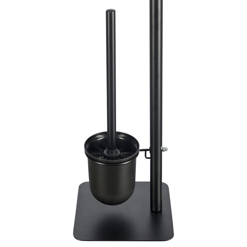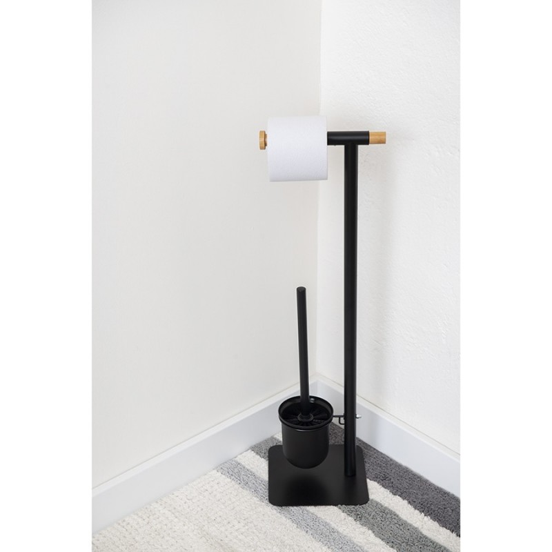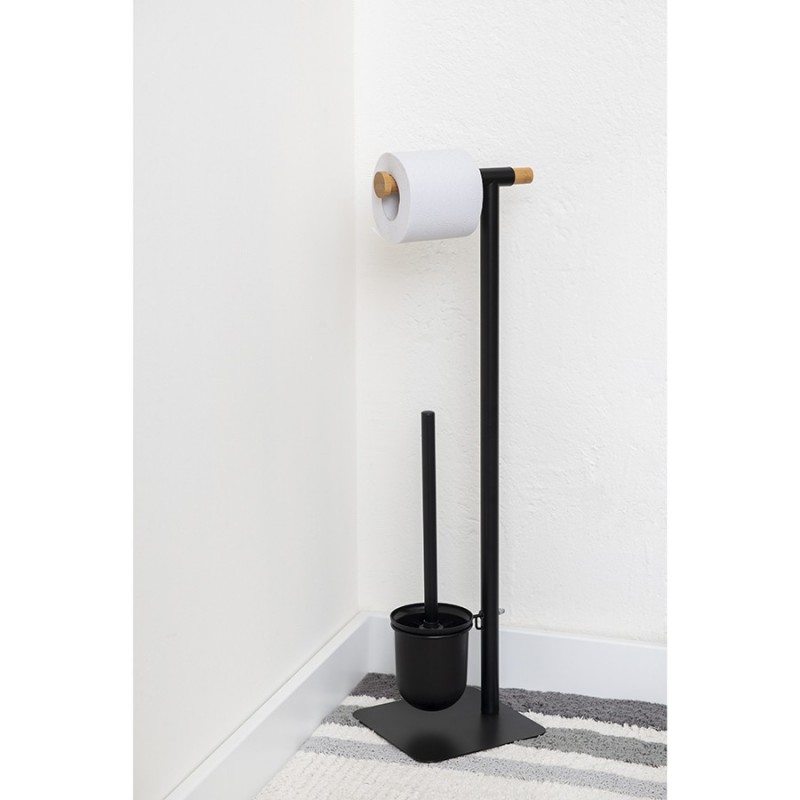 Держатель для туалетной бумаги с ершиком Mats от бренда Bergenson Bjorn представляет собой стильную и продуманную до мелочей конструкцию, которая прекрасно впишется в интерьер любого современного санузла. Сочетание элементов из железа и бамбука обеспечивает напольному аксессуару практичность, долговечность и интересный вид. Щетка с изогнутой рукояткой удобно сидит в руке и позволяет качественно очищать унитаз в труднодоступных местах. Внутренний контейнер из пластика защищает металлический корпус от прямого контакта с водой и загрязнениями, легко моется. За счет минималистичного дизайна и классического цветового решения модель отлично сочетается с различными вариантами оформления помещения.Материал: железо, бамбук. Размеры: 20,5х18х67 см. Цвет: черный.Пыль и загрязнения рекомендуется удалять при помощи мягкого влажного материала.