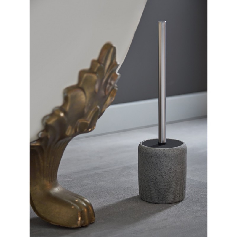Ершик для унитаза Loup имеет устойчивую подставку-стакан из прочного и износостойкого полирезина, которая в сочетании с элементами из нержавеющей стали обеспечивает ему надежность и долгий срок службы. Материалы не только эстетически привлекательны, но и идеально подходят для влажных помещений, так как обладают отличной водоотталкивающей способностью и не боятся коррозии. Ершик оснащен длинной ручкой, которая позволяет качественно удалять загрязнения со всей поверхности унитаза, в том числе в труднодоступных местах.Коллекция аксессуаров Loup сделает пространство вашей ванной комнаты более комфортным и функциональным. Имитация фактуры натурального камня и естественные оттенки привнесут в интерьер нотки природной элегантности. Линейка понравится поклонникам скандинавского стиля и минималистичных интерьеров, где предпочтение отдается простым формам и спокойной цветовой гамме.Материалы: полирезин, нержавеющая сталь. Размеры базы: 10,7х12,2 см. Размеры ершика: 8,6х36 см. Цвет: темно-серый.Ершик можно очищать в теплой воде с помощью мягких моющих средств. Запрещается использование агрессивной бытовой химии и абразивных материалов.