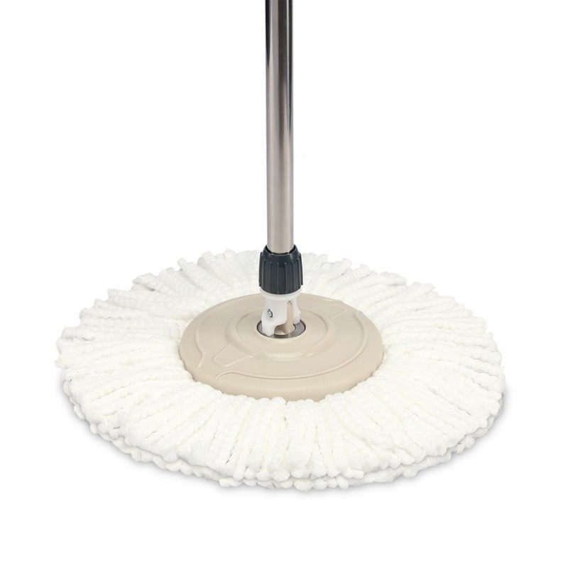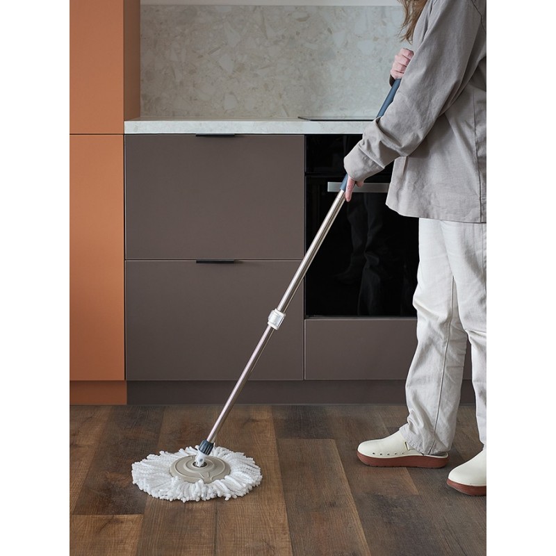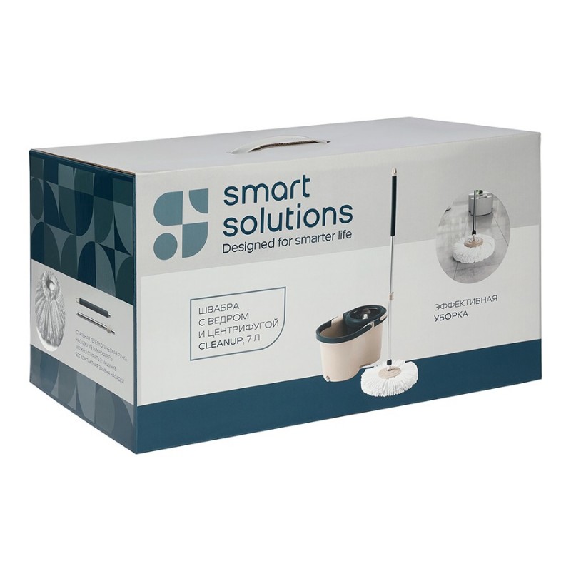 Швабра Cleanup сочетает в себе премиальное качество, эргономичный дизайн и передовые технологии, делая процесс уборки не только простым и эффективным, но и увлекательным. С центрифугой вы сможете быстро и удобно отжимать насадку до любого состояния, обеспечивая идеальную чистоту на различных поверхностях.Особенности и преимущества:- Телескопическая ручка из прочной и долговечной стали увеличенной толщины с мягкой накладкой для удобного использования. - Запатентованная система отжима, которая полностью контролирует поток воды – жидкость остается в емкости, а не разлетается по сторонам. - Ведро оптимального объема 7 л с отделением для полоскания и автоматической центрифугой. - Рабочая часть с углом вращения 360 градусов для эффективного удаления пыли и загрязнений под мебелью и в труднодоступных местах. - Насадка с двойным рядом мягкой, практичной микрофибры премиального качества, которая при замене не требует контакта с руками, что обеспечивает максимальное удобство и гигиеничность в процессе уборки. - Быстрый и удобный слив грязной воды двумя способами: через верх ведра или через специальный клапан внизу. - Возможность использования швабры для очищения любых напольных покрытий, а также для мытья окон. - Ведро легко разбирается на составные элементы для эффективной очистки. - Приятная, актуальная для современных интерьеров цветовая гамма.Материалы: полипропилен, ABS-пластик, ПВХ, поликарбонат, нержавеющая сталь, пенополиуретан, полиэстер. Размеры ведра: ширина – 46,3 см (верх ведра), 40 см (низ ведра), длина – 26,5 см (верх ведра), 20,5 см (низ ведра). Высота ведра: 24,5 см.Диаметр ручки: 3,3 см, Диаметр трубки: 2,5 см. Размеры рабочей части: 16 см. Длина швабры: 89/119,7 см (телескопическая). Объем ведра: 7 л.Ведро можно очищать в теплой мыльной воде. Насадку можно стирать в стиральной машине.