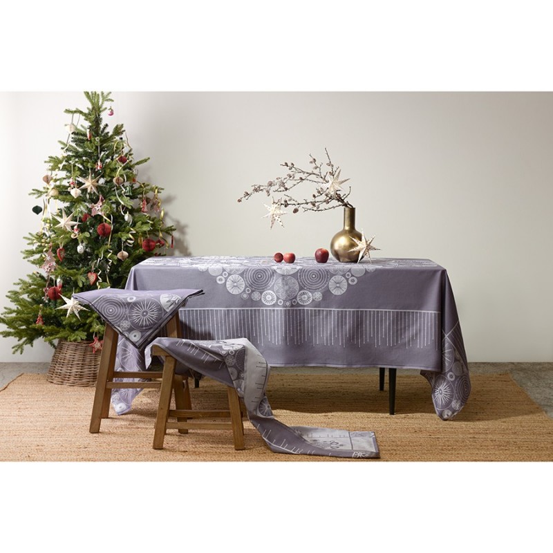 Скатерть из хлопка фиолетово-серого цвета с рисунком Ледяные узоры, new year essential, 180х260см (артикул 3375)