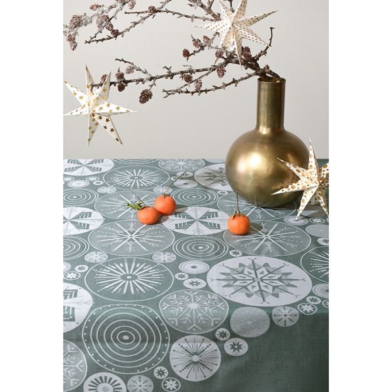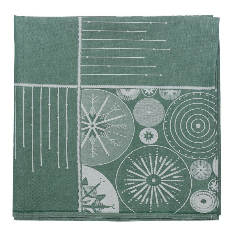 Скатерть из хлопка зеленого цвета с рисунком Ледяные узоры из коллекции new year essential, 180х260см (артикул 3373)